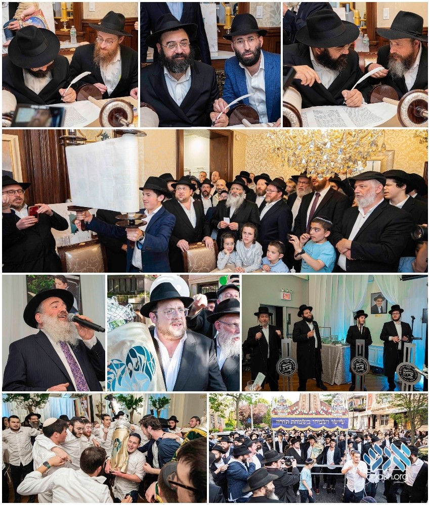 Writing of the final letters took place in the Karnowsky home followed by dancing and procession to Heichel Shmuel at Oholei Torah 667 Eastern Parkway.