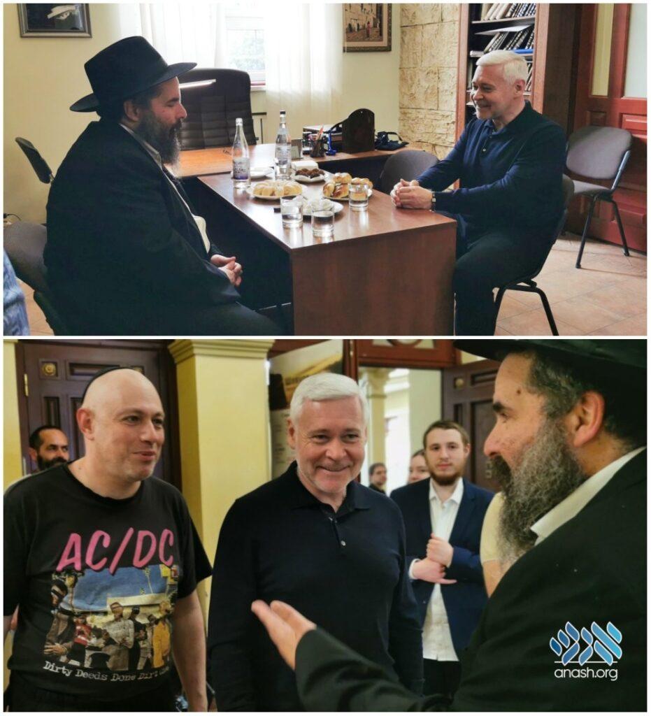 The mayor of Kharkov, Igor Terechov visited the Kharkov Synagogue to meet shliach Rabbi Moshe Moskovitz and thank him for the help that the Jewish community is giving to the residents of Kharkov.