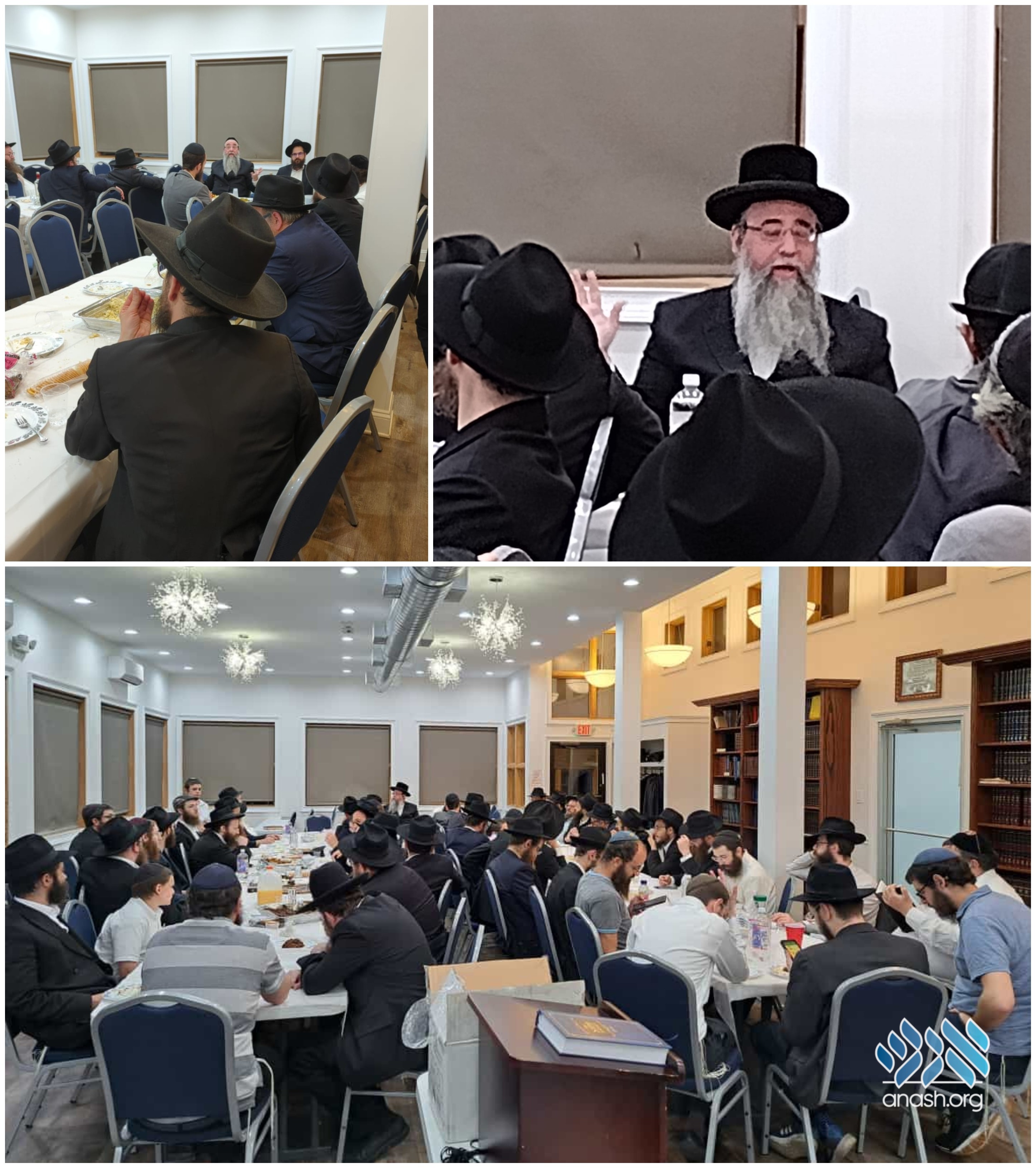 Anash of Kingston, PA, gathered on Chai Elul for a community farbrengen with Monsey Rov and author of seforim Harav Gedalya Oberlander.