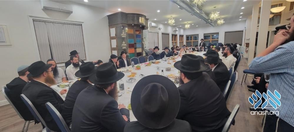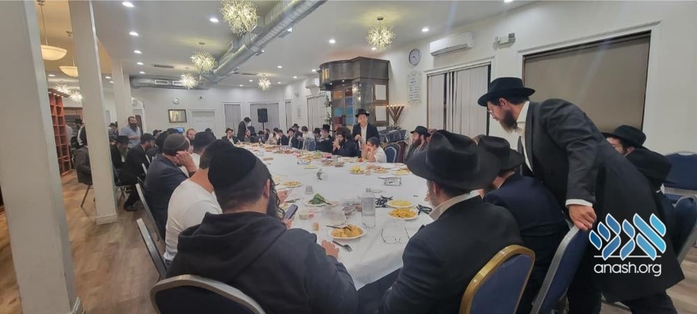 Anash in Kingston, Pennsylvania, gathered in for a farbrengen in honor of Chai Elul. The farbrengen was led by guest mashpia Rabbi Michoel Seligson, who inspired the attendees with stories and lessons from the Rebbe in connection with the day.