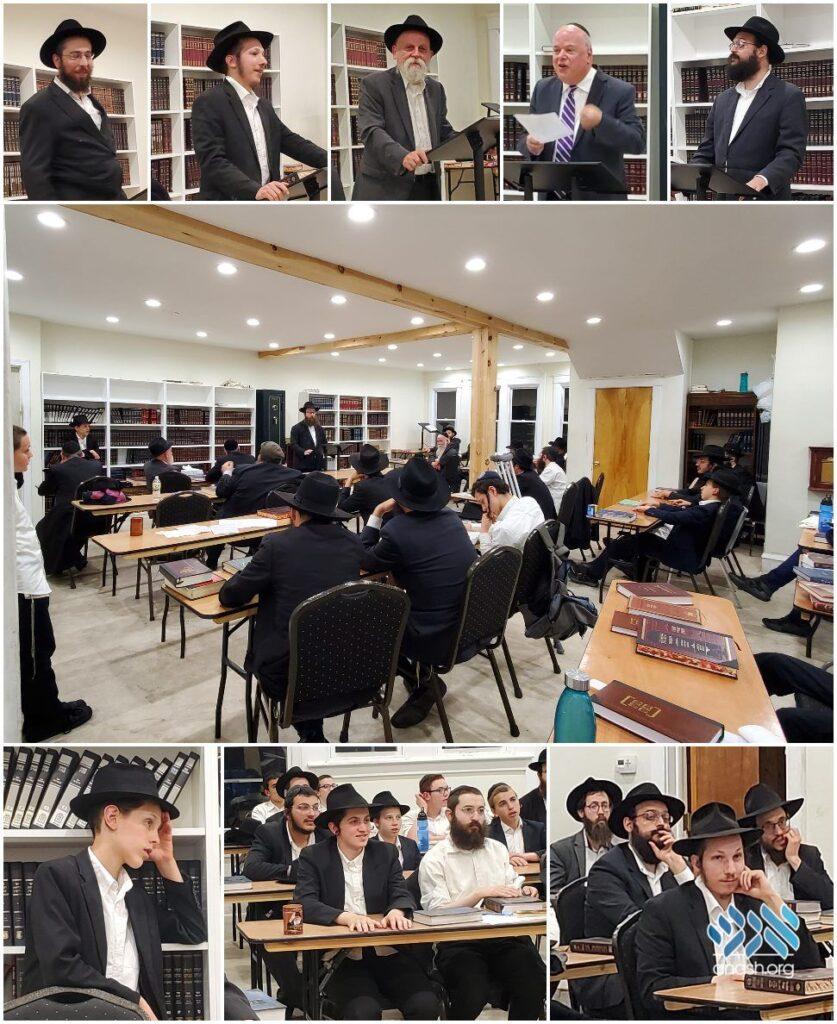 A crowd of Anash and bochurim of the Kingston PA community gathered at the Mesivta for a Kinus Torah led by staff, local rabbonim, and community members.