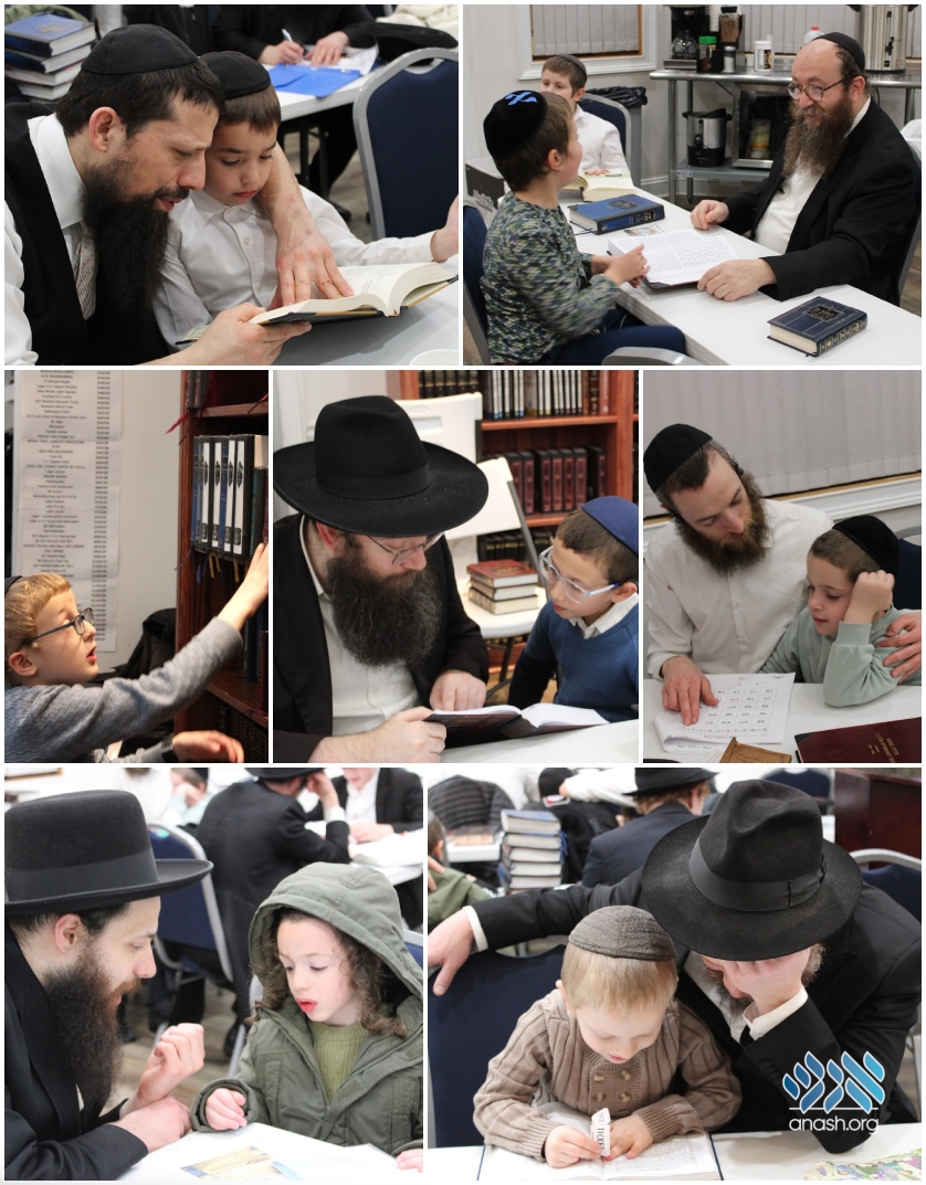 The boys used the time to review the Mishnayos or Gemara they are learning in Cheder, as well as other studies. Boys whose fathers could not attend or are learning with another one of their sons, bochurim from the Kingston Mesivta were paired up to learn with them.