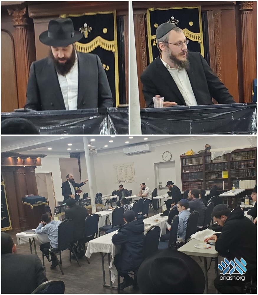 Anshei Lubavitch shul of Crown Heights hosted a Kinus Torah on Isru Chag Pesach, addressed by Rabbis Lipman Heller, Peretz Schapiro, and Dovber Matusof.