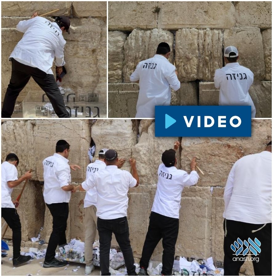 Ahead of Rosh Hashana 5785, tens of thousands of notes were cleared from the Kosel, according to halachic guidelines using gloves and disposable wooden tools, with the aim of making space for the mispalelim coming before the new year.