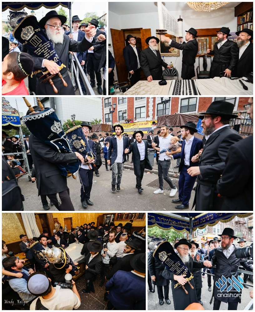 The Kramer family dedicated a new Sefer Torah on Sunday in honor of their parents Rabbi Yitzchok Michel and Chaya Rivka Kramer. A large crowd danced with the Torah up Kingston Avenue to 770.