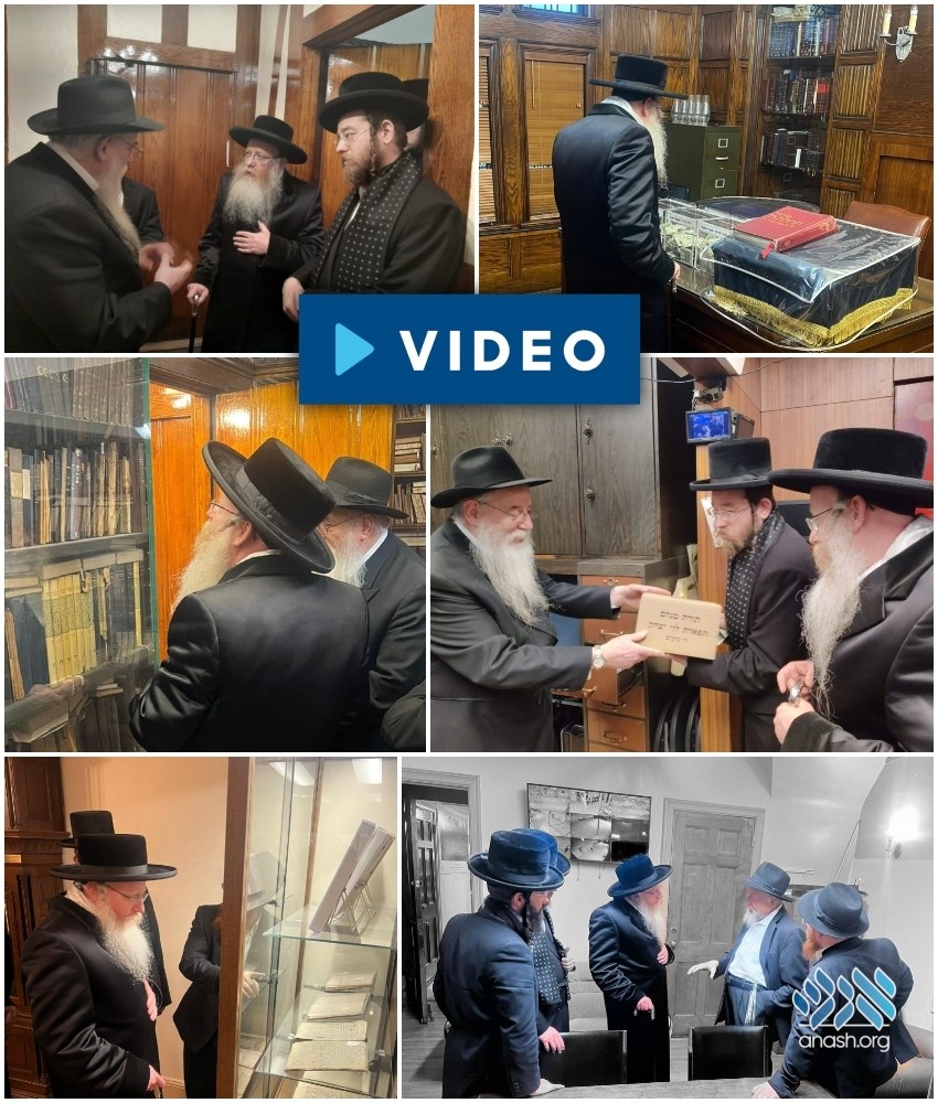 Harav Dovid Moshe Rosenbaum, the Kretshnif Rebbe of Kiryat Gat, paid a visit to 770 on Tuesday, where he was shown the Rebbe’s room and the library.