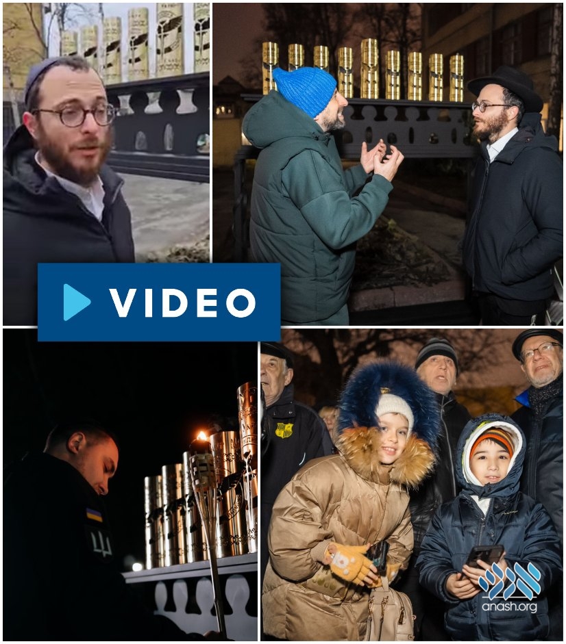 About 500 members of the Jewish community in Kyiv gathered to light the first candle of Chanukah together with the head of the Ukrainian Military Intelligence, using a menorah designed by a local artist using metal parts from the drone that attacked the school.