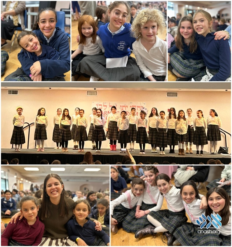 The program began with Torah, Teffilla and Tzedakah, followed by the Rebbetzin Kapital. Followed by Morah Shterni Levy’s Third-grade class performing a song exemplifying והחי יתן אל לבו. The whole school joined in and continued with songs emphasizing the connection to the Rebbe and Rebbetzin as well as the Bais Chaya Mushka school song.
