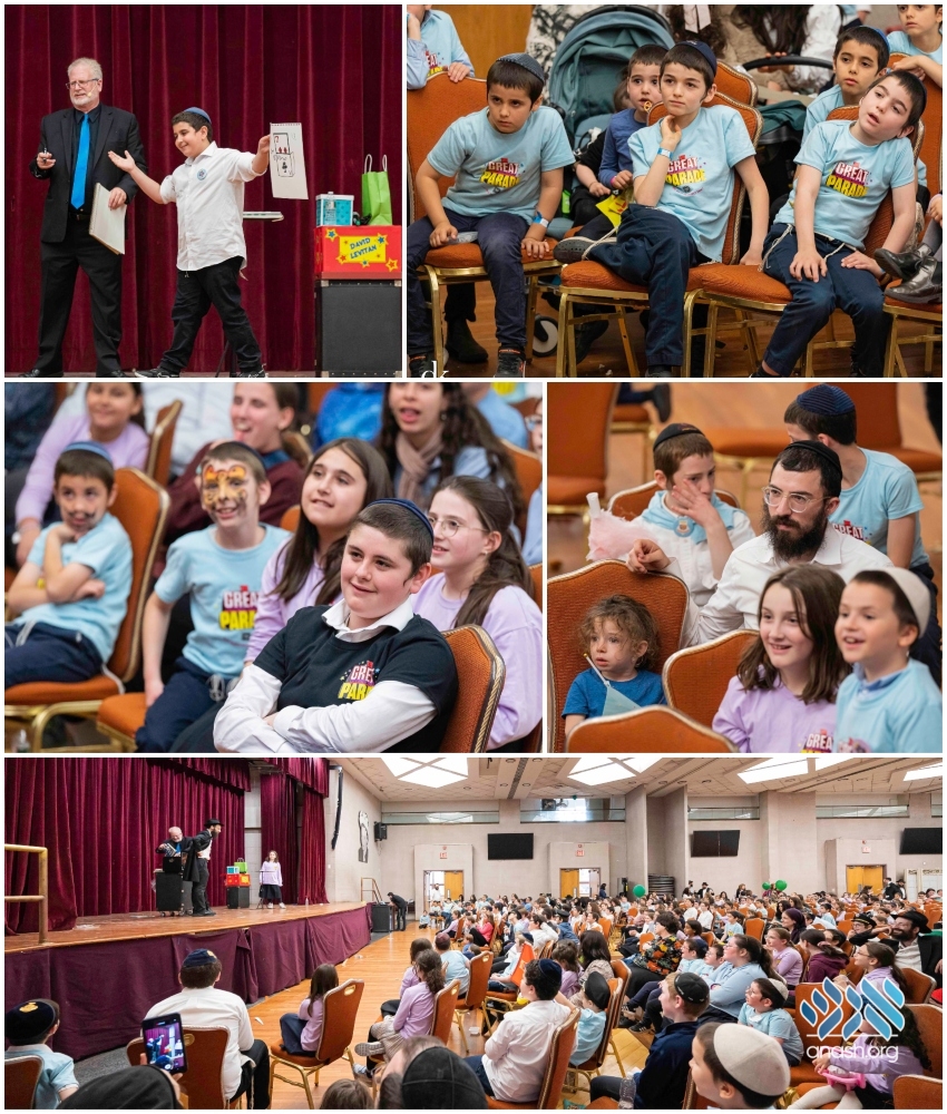 Following the Great Parade outside 770, Crown Heights children enjoyed hours of non-stop fun including a magic show at Bais Rivka.