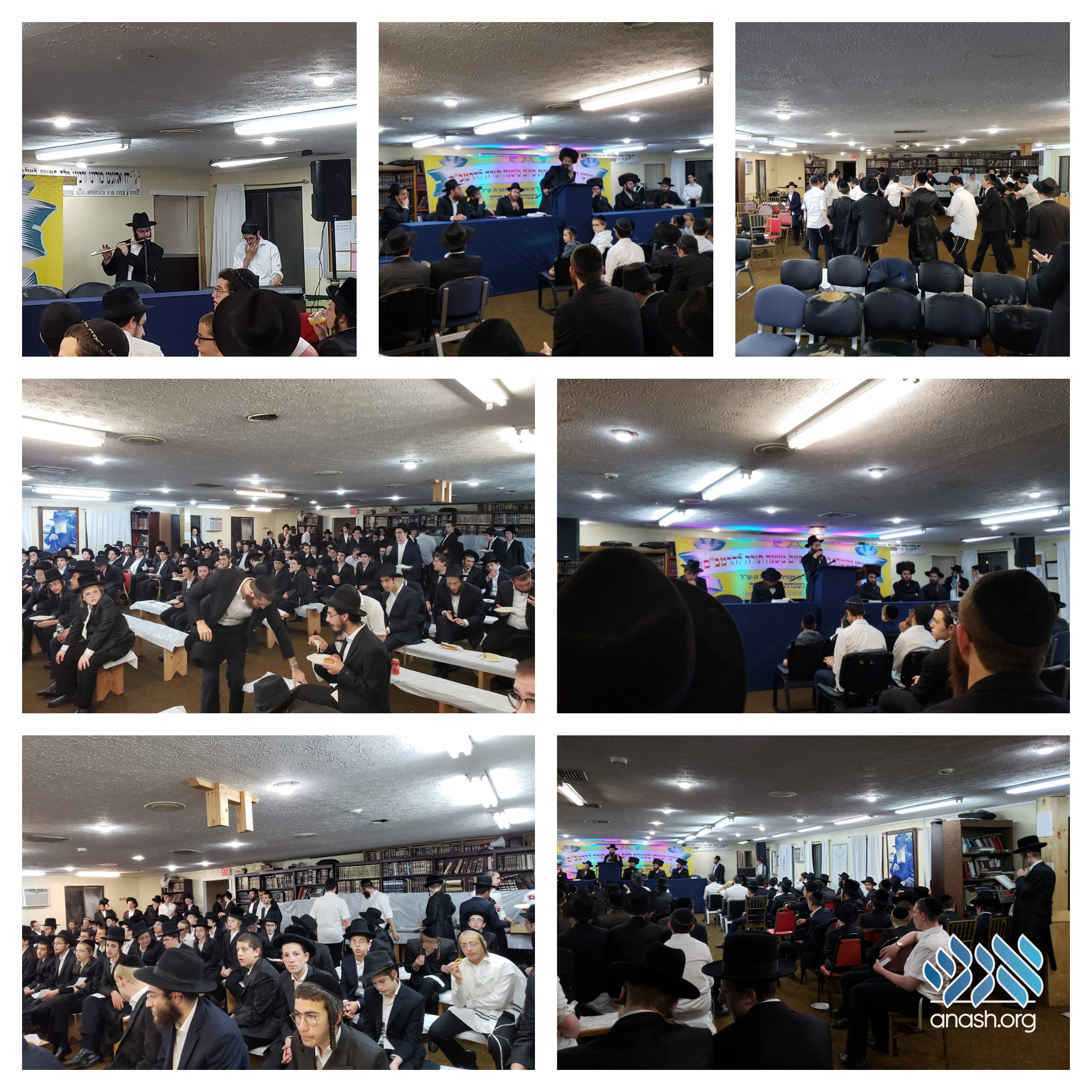 Pursuant to the rebbes hora’ah to organize grand Siyumei HoRambam, this Motzoei Shabbos Nachamu, Yeshivas Kayitz Queens joined with Camp Merkos Hachaim, a Yeshiva from Lakewood that spends their summers in the Poconos, in the yeshiva zal for a Grand Siyum Harambam and Melava Malka. Many other vacationers and attendees of other surrounding camps and vacation spots also joined, in a tremendous sense of achdus.