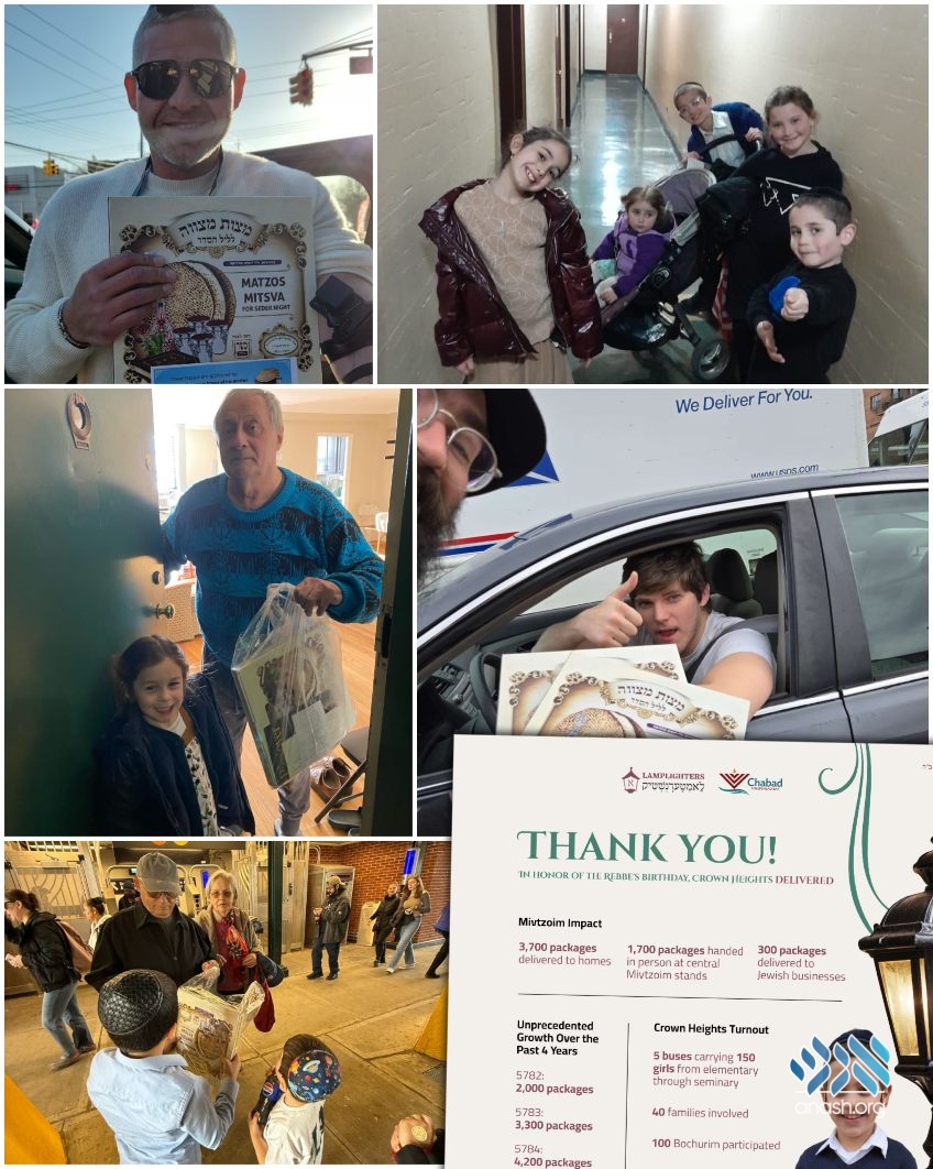 Following a historic Mivtza Matzah in Sheepshead Bay, during which Crown Heights families, bochurim, and seminary girls distributed over 5,700 boxes of Shmurah Matzah, the “Lamternshtik” initiative thanks all the participants, who are themselves thankful for having joined.
