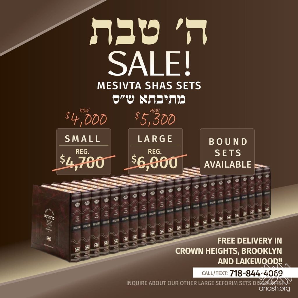 Hey Teves Book Fair: The 136-volume Talmud Bavli Mesivta has transformed the experience of learning Gemara for thousands of learners worldwide. Now it’s on sale with free delivery in Crown Heights.