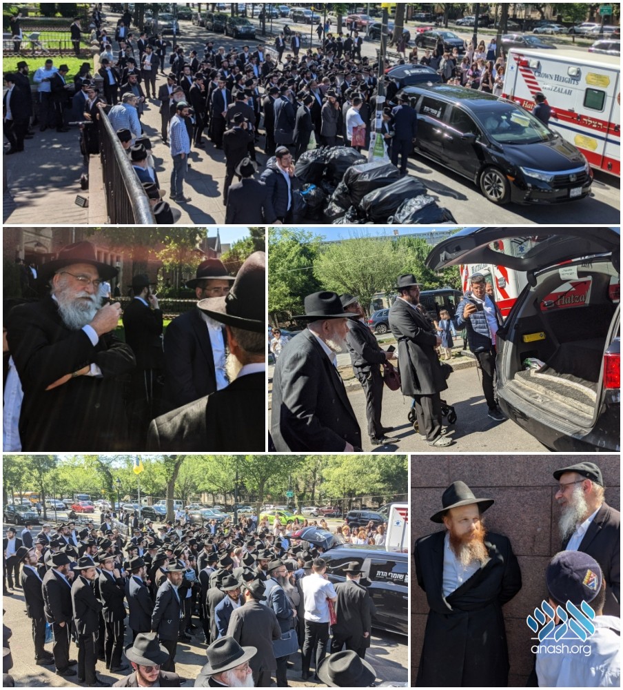 Hundreds of chassidim gathered for the levaya of Rabbi Mendel Aronow, a renowned chossid from Toronto, who served as a sofer and mashpia of the Chabad community, as it passed by 770 Eastern Parkway.