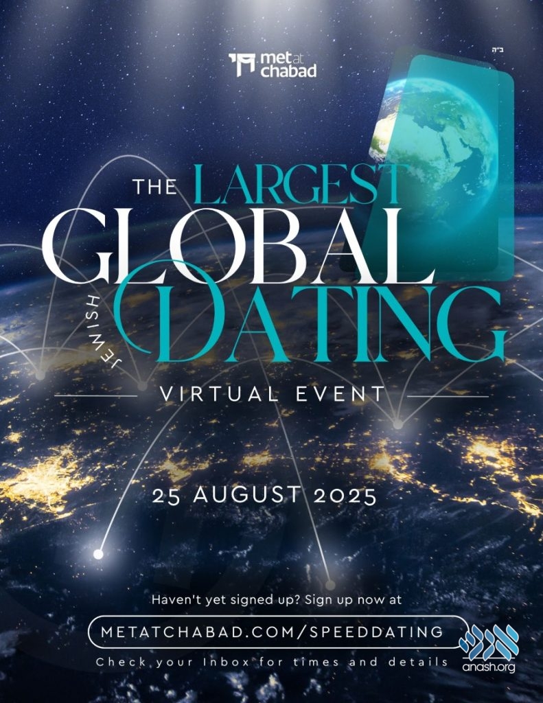 On Rosh Chodesh Elul, thousands of young Jewish singles from Chabad Houses around the world will log on and maybe, unknowingly, sit across the screen from their soulmate. It will be the largest synchronized Jewish dating event ever held, and the culmination of years of shluchim guiding, preparing, and supporting their singles in communities worldwide.