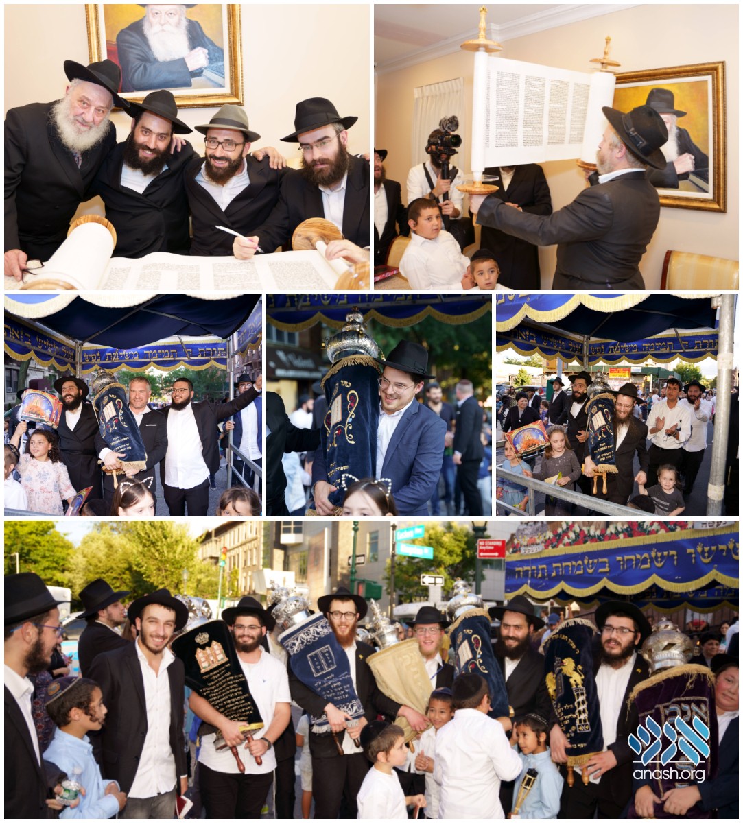 After writing the final letters at the Lasker home, the procession headed towards 770 where hakafos were held.