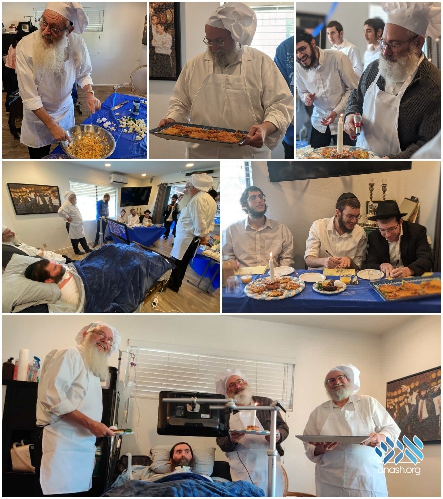 While most shluchim were busy preparing their next chanukah party, four Rabbis took the time to join a very different type of party. Rabbis Simcha Backman, Chaim Mentz and Yochanan Manssouri came to the home of Rabbi Yitzi Hurwitz, who is battling ALS, and competed in the ultimate latke cook-off.