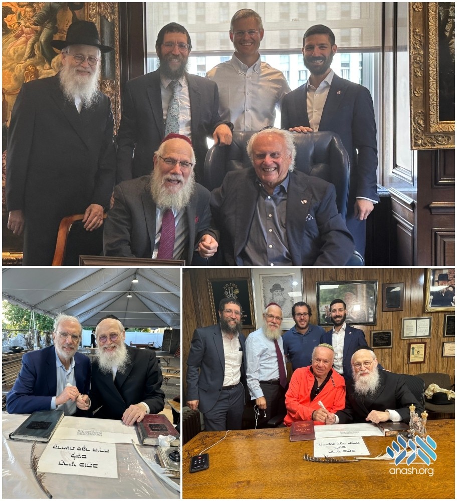 The Hecht family already began visiting friends and supporters, giving them the great opportunity to write a letter in the Traveling Torah. Mr. Ira Rennert and his son Ari, close friends of the Hecht family, kicked off the launch by dedicating the book of Bereshit and writing the first word, Bereshis. Growing up, Mr. Rennet’s rabbi was none other than Rabbi Shea’s father, Rabbi Jacob J. Hecht OBM. Appropriately, the writing of the Torah commenced on the yahrzeit of Rabbi Hecht OBM with Mr. Rennert and his family.