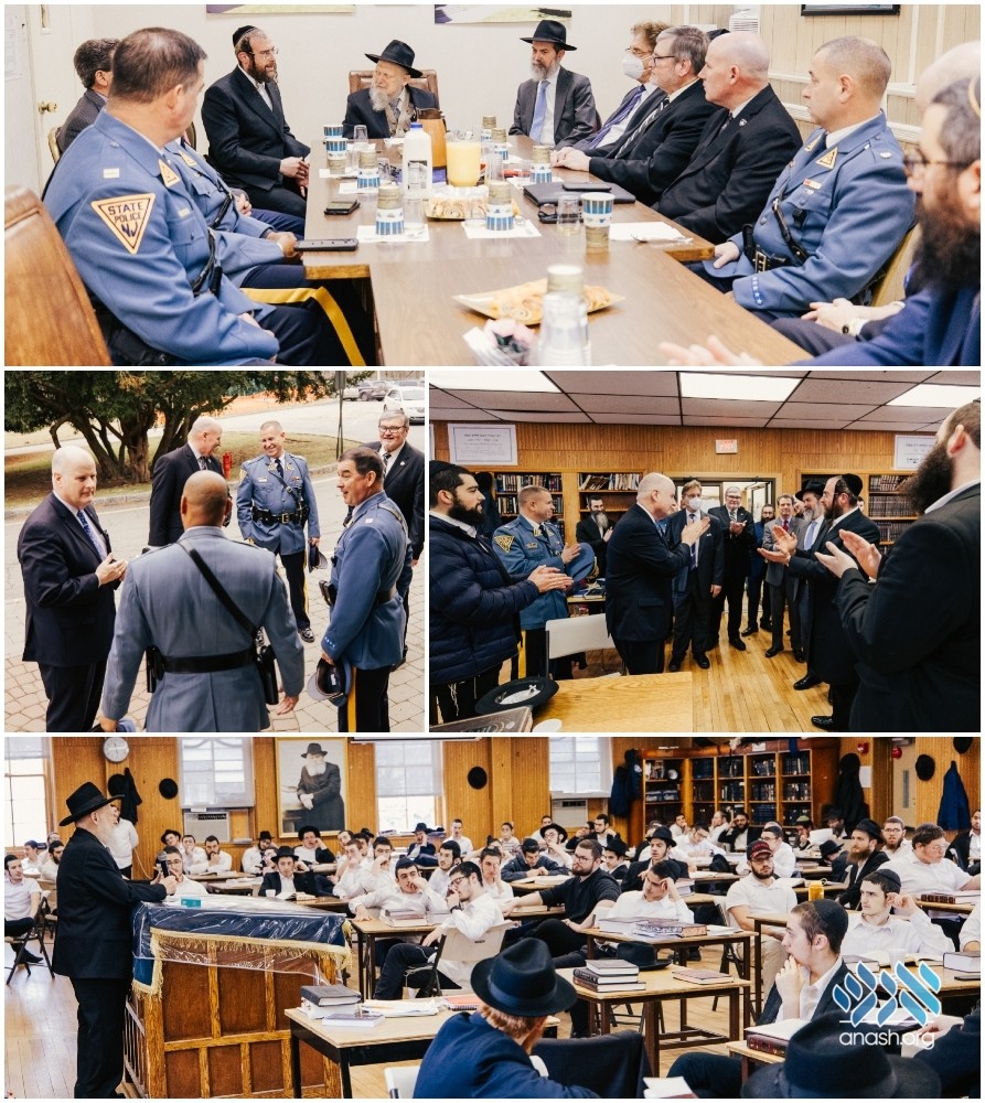 A group of law enforcement leaders paid a visit to the Rabbinical College of America in Morristown and addressed the students on the invitation of Dean Rabbi Moshe Herson, Head Shliach of New Jersey.