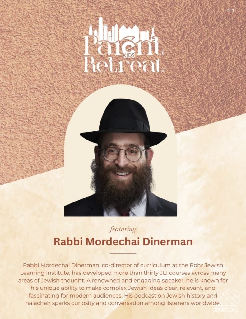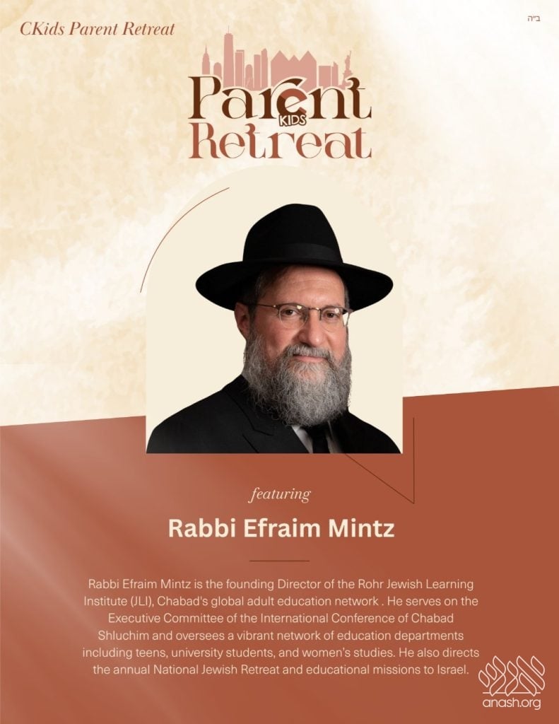 Also addressing parents will be Rabbi Shais Taub, known for making Chassidus practical and relevant to everyday life, and Rabbi David Nesenoff, a widely traveled speaker, author, and filmmaker who addresses Jewish identity and the challenges facing Jewish families today.