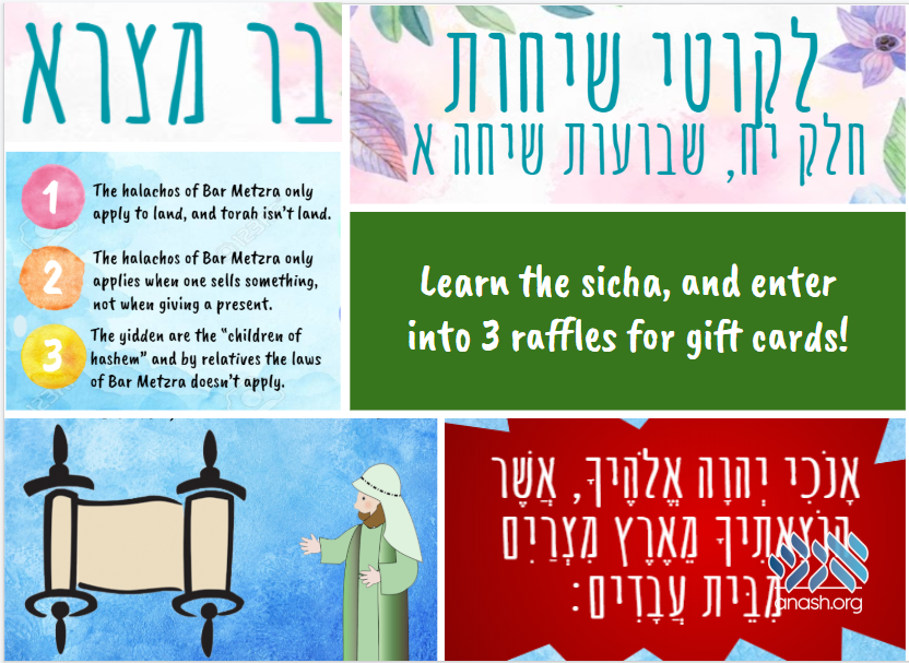 Boys in grades 5 through 8 can learn a Sicha on Shavuos and be entered into a special raffle on 3 prizes.