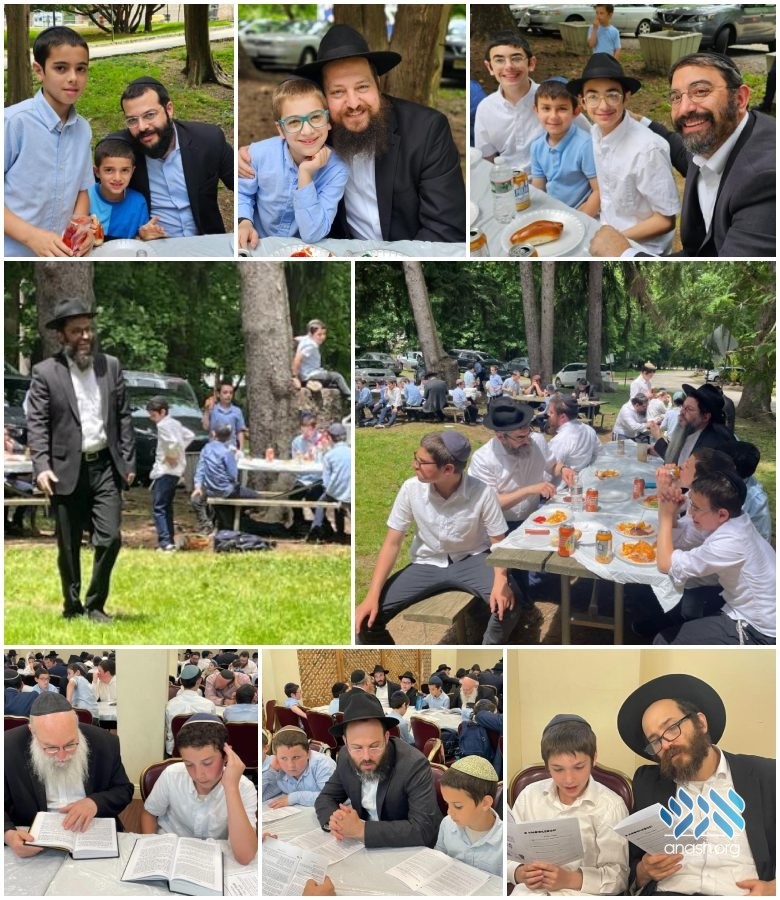 The sun was shining brightly with a cool breeze in the air – the perfect weather for the annual Father-Son BBQ at the Cheder Lubavitch Morristown. The Berger Auditorium was packed with fathers and sons learning b’chavrusa. There were options available that included a sicha from the Rebbe, ma’amer from the Alter Rebbe, and stories from the Frierdiker Rebbe – all material to prepare for the upcoming Yom Tov, Shavuos. Afterward, everyone moved outdoors to attend a delicious BBQ picnic on the grounds of the Rabbinical College of America.