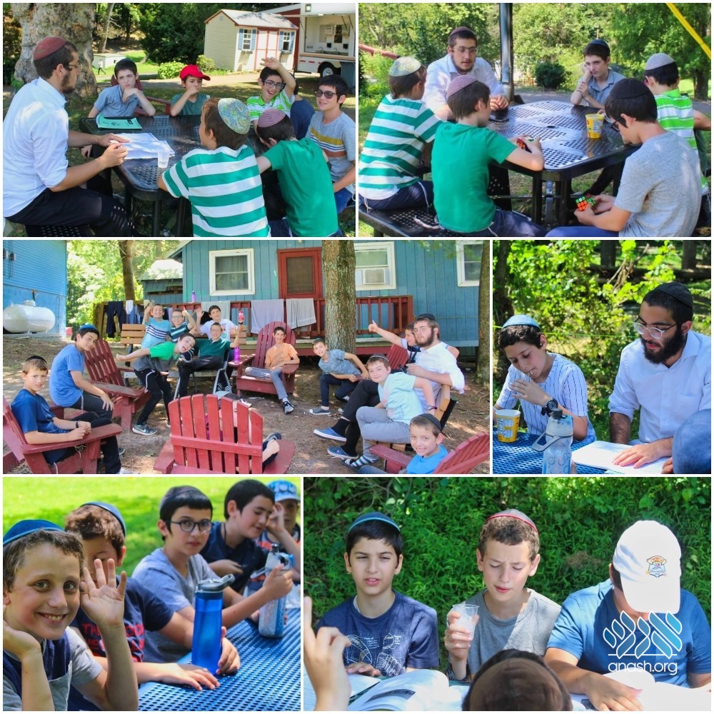 Campers at Camp Gan Yisroel – YKK in the Pennsylvania mountains, spend a significant part of their day studying Torah with their dedicated learning teachers.