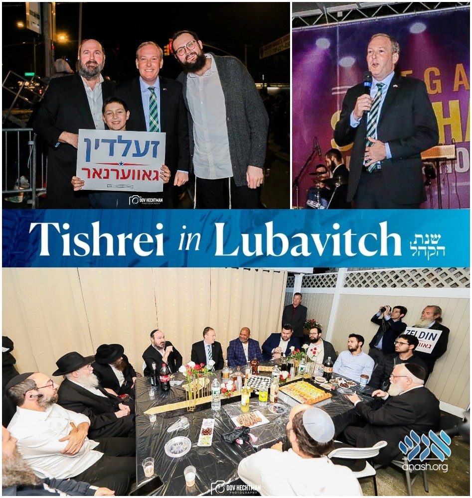 Congressman Lee Zeldin, the Republican candidate for Governor of New York, visited Crown Heights on Tuesday night and joined the Sukkos festivities.