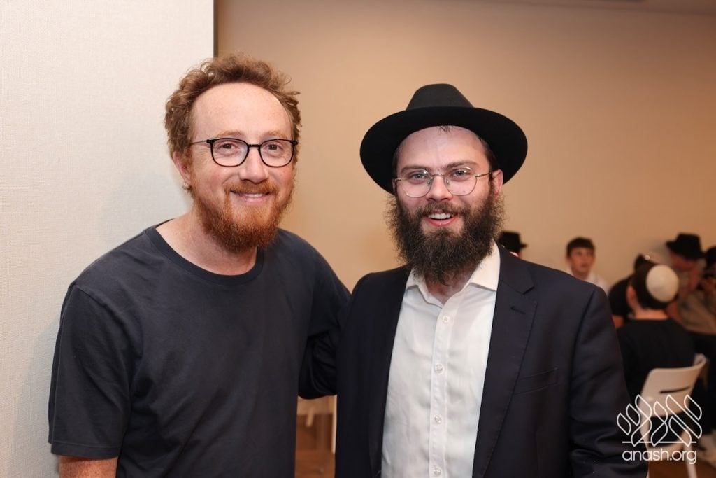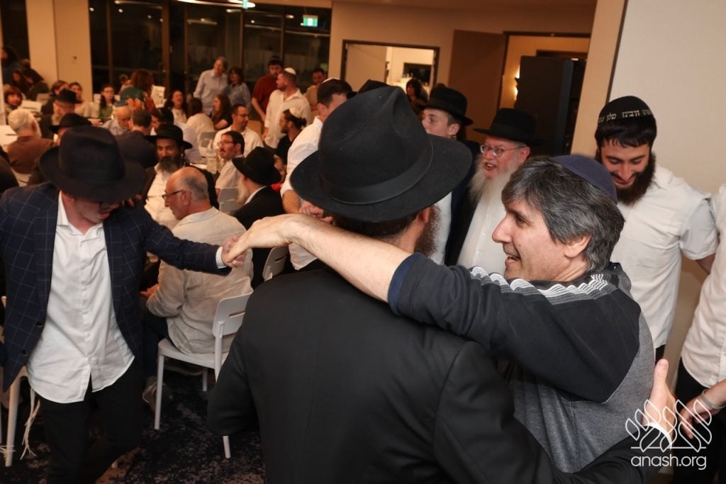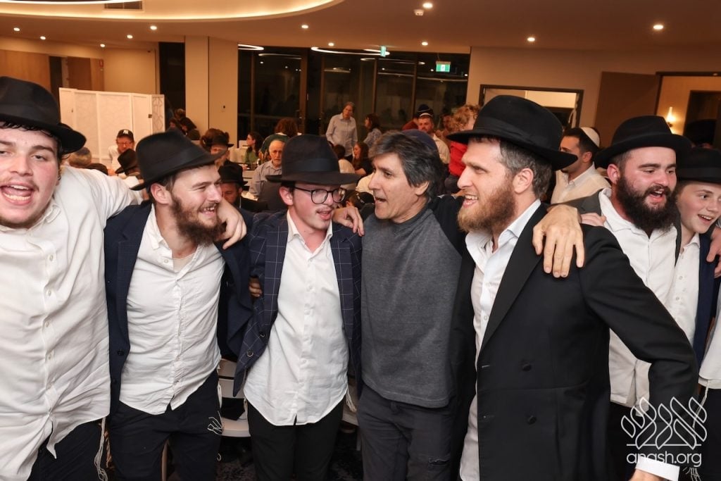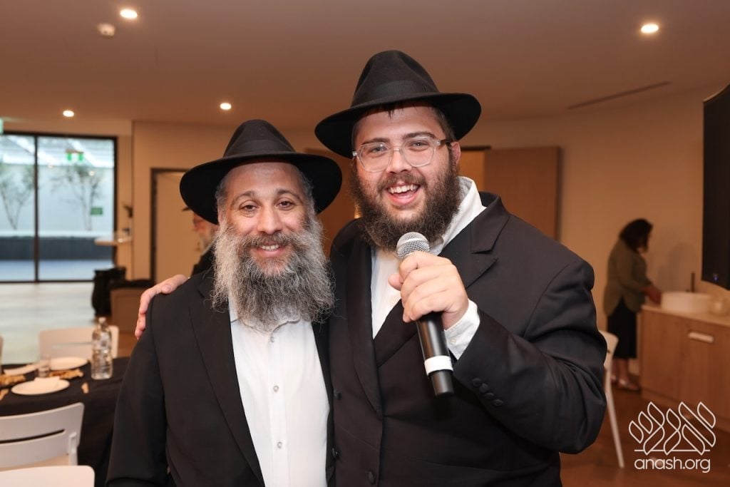 The farbrengen was coordinated by Rabbi Elimelech Levy of Chabad Youth NSW, who also served as MC for the evening. Catering was provided by Mila Catering, photography by Daniel Katz, sound by Chaim Ayalon, and video by Mark Singer.