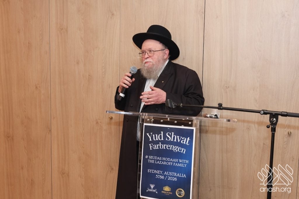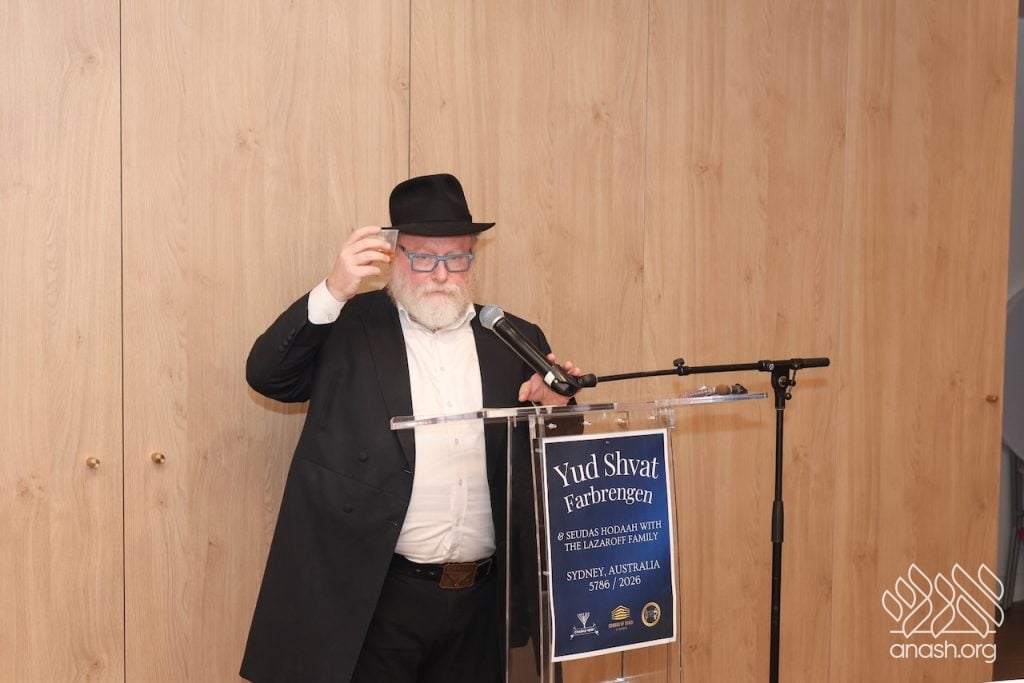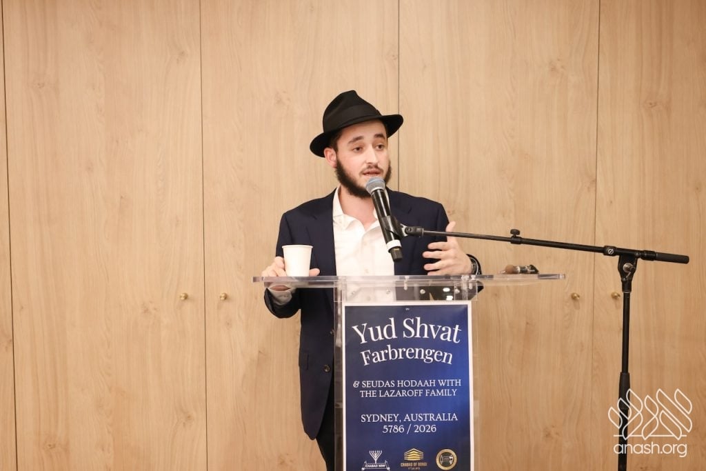 Sydney’s Jewish community gathered in large numbers to mark Yud Shvat at a moving communal farbrengen, jointly hosted by Chabad NSW, Chabad of Bondi, and Tzemach Tzedek, with the participation of the Lazaroff family, who co-hosted the evening as a seudas hodaah.