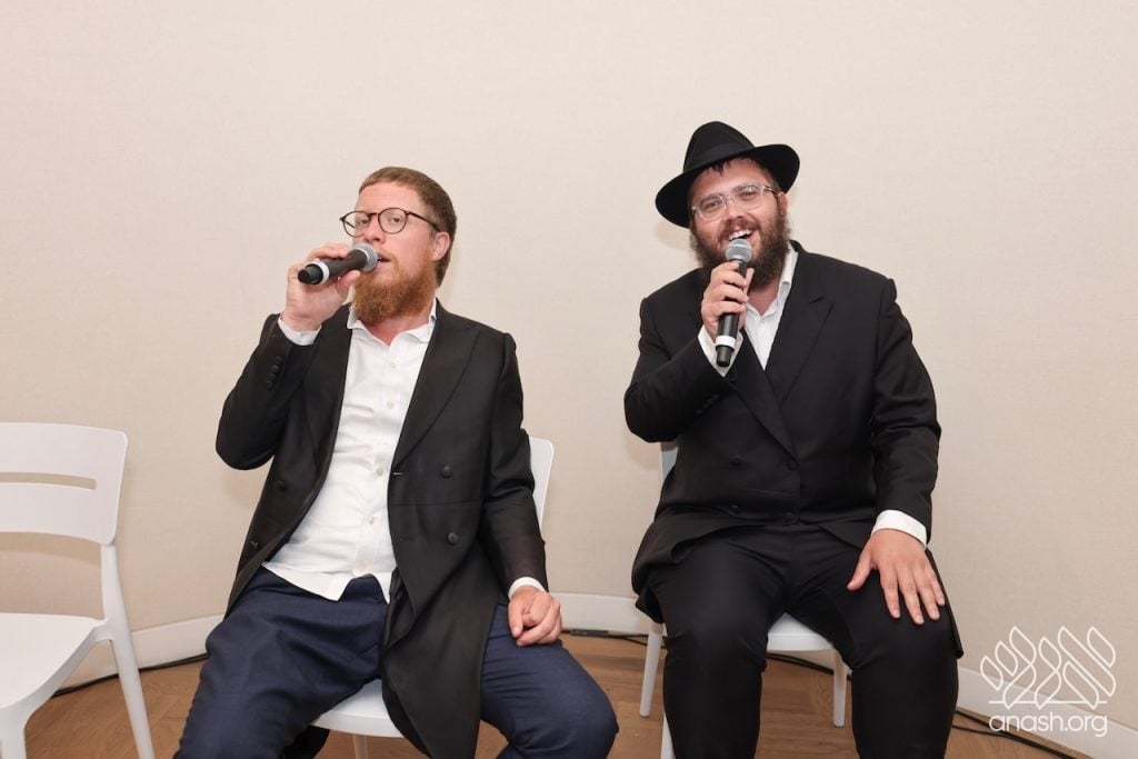 The program opened with live music and singing by Rabbi Yehuda Niasoff and Rabbi Menachem Feldman, setting a tone of joy and elevation through niggunim and song.