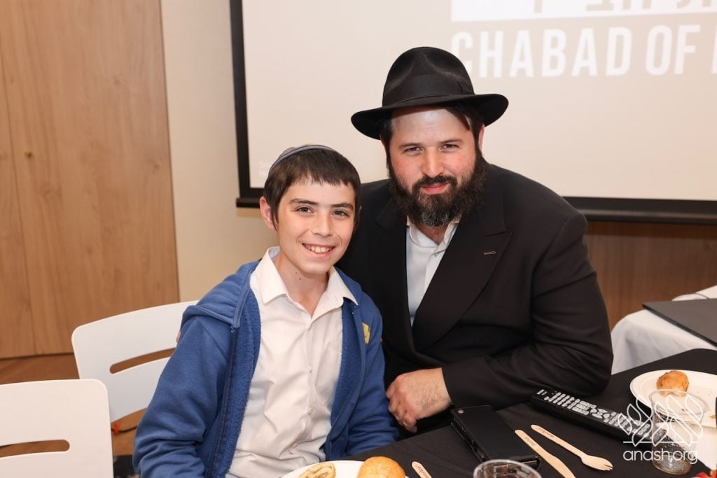 Rabbi Lazaroff was followed by his son, Laibel Lazaroff, who spoke with courage and sincerity. Rabbi Mendy Ulman noted that Laibel had been serving as a volunteer rabbi-in-training at Chabad of Bondi prior to the attack. The evening also served as a Seudas Hoda’ah, expressing heartfelt gratitude for Laibel’s recovery from his gunshot wounds sustained in the Bondi Beach terrorist attack. His words were received with deep emotion and admiration.
