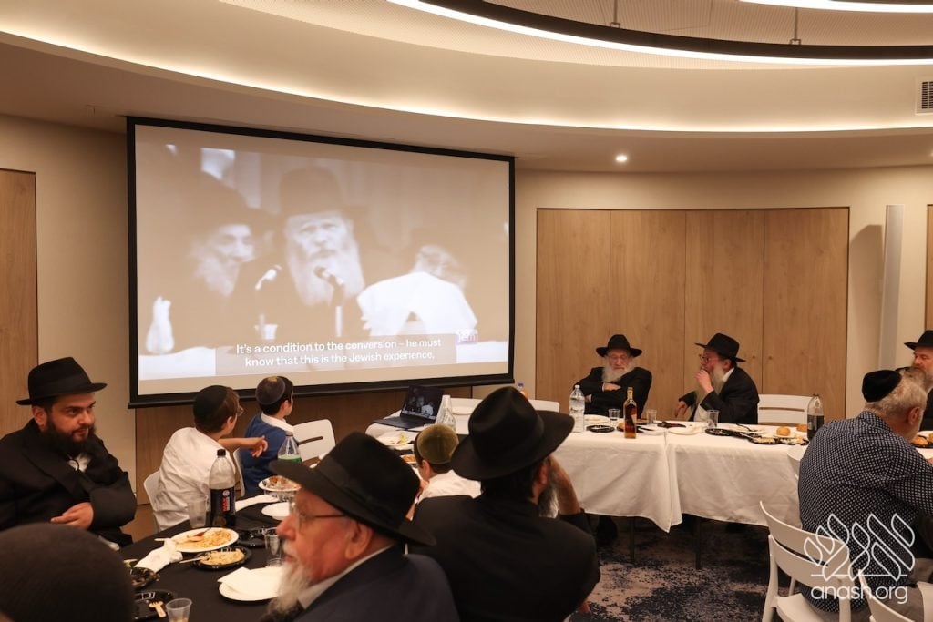 Following the video, Rabbi Avrohom Perlow led the assembled community in the recitation of Tehillim on behalf of the Jewish people in Eretz Yisroel, Jewish communities around the world, and particularly the Sydney community, where many are still recovering from the traumatic Bondi Beach terrorist attacks on Chanukah.