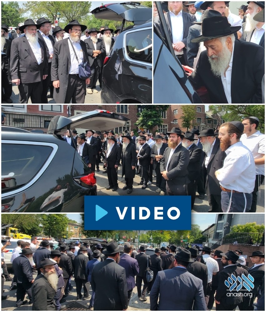 The levaya for Rabbi Yitzchok Goldstein, shliach of the Rebbe to Madrid, Spain passed by 770 Eastern Parkway on Monday afternoon before burial near the Rebbe’s Ohel.