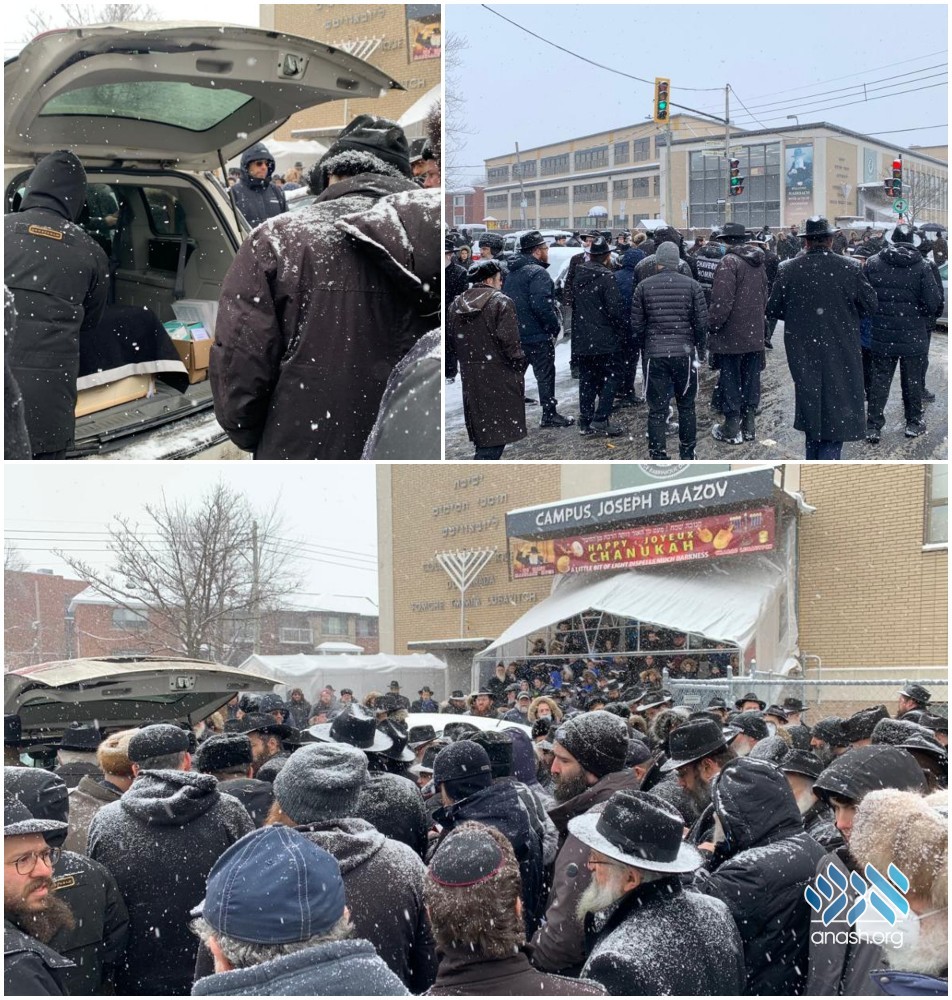 The levaya for R’ Yossi Greenglass of Montreal took place at Yeshivas Tomchei Tmimim, where he served as a fundraiser, amidst a heavy snowfall.
