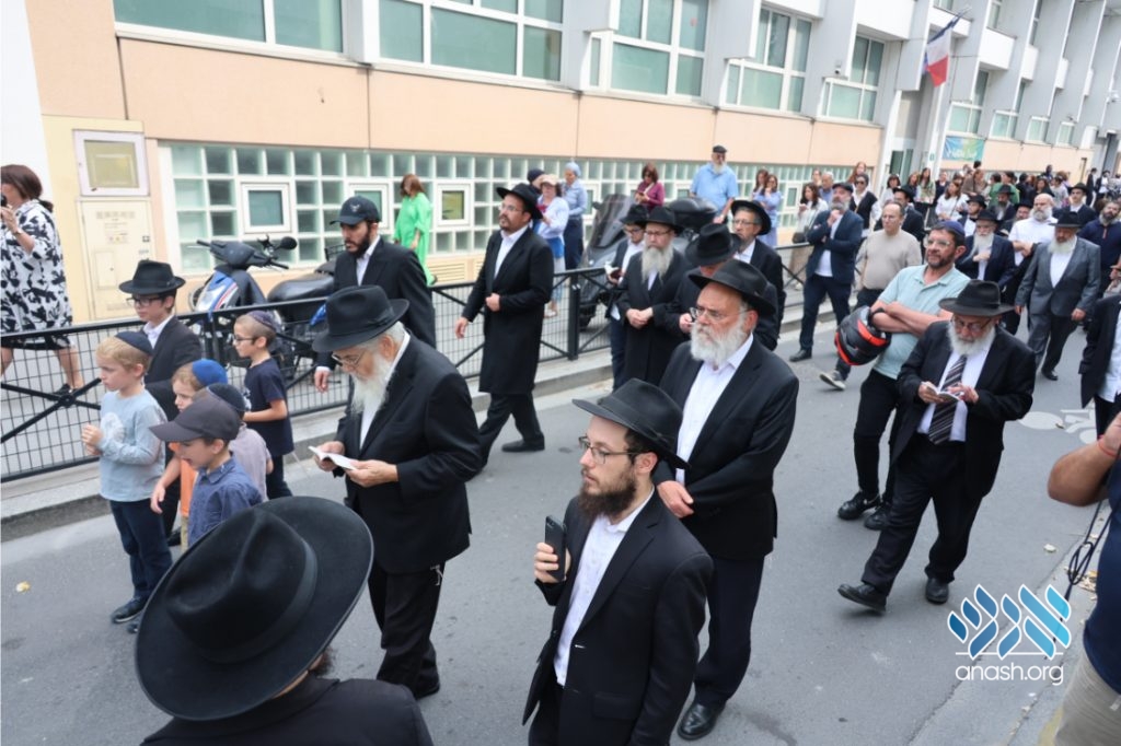 Hundreds accompanied Mrs. Basya Kalmenson, a noted mechaneches and veteran shlucha in Aubervilliers, France, and matriarch of a large Lubavitch family, who passed away on Monday, on the way to kevurah alongside her husband in Eretz Yisroel.