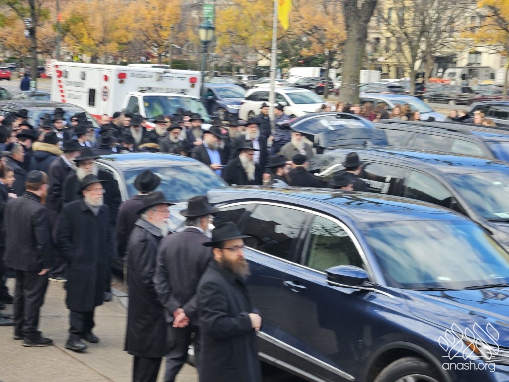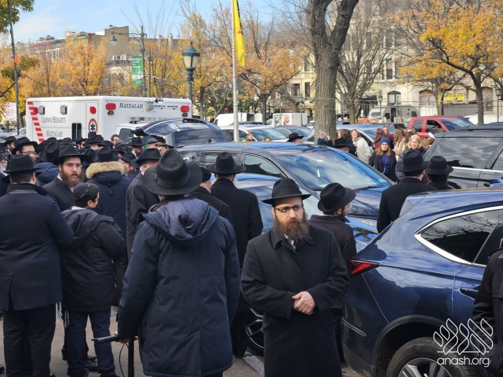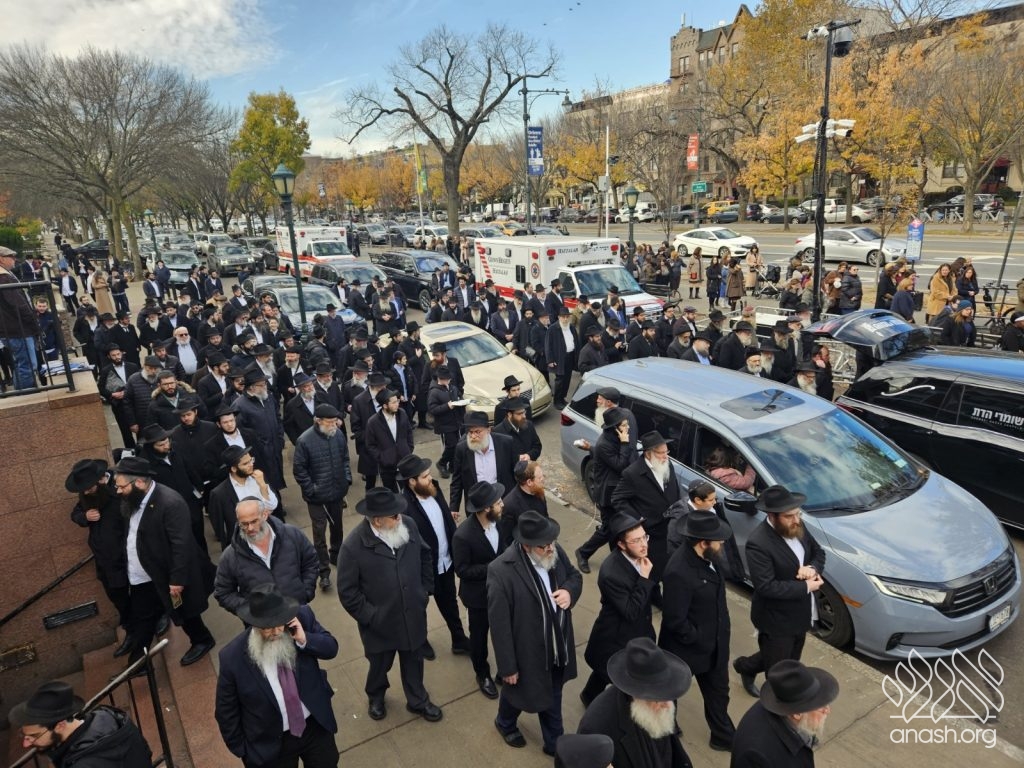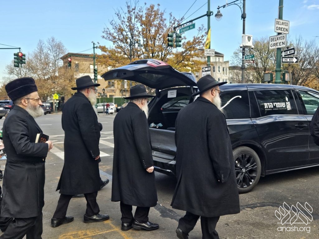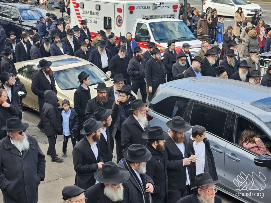 The levaya for Mrs. Sheina Tema Gurary, founder and longtime editor of the “Di Yiddishe Heim” Lubavitch magazine and matriarch of a large Lubavitch family, passed by 770 on the way to kevura near the Ohel.