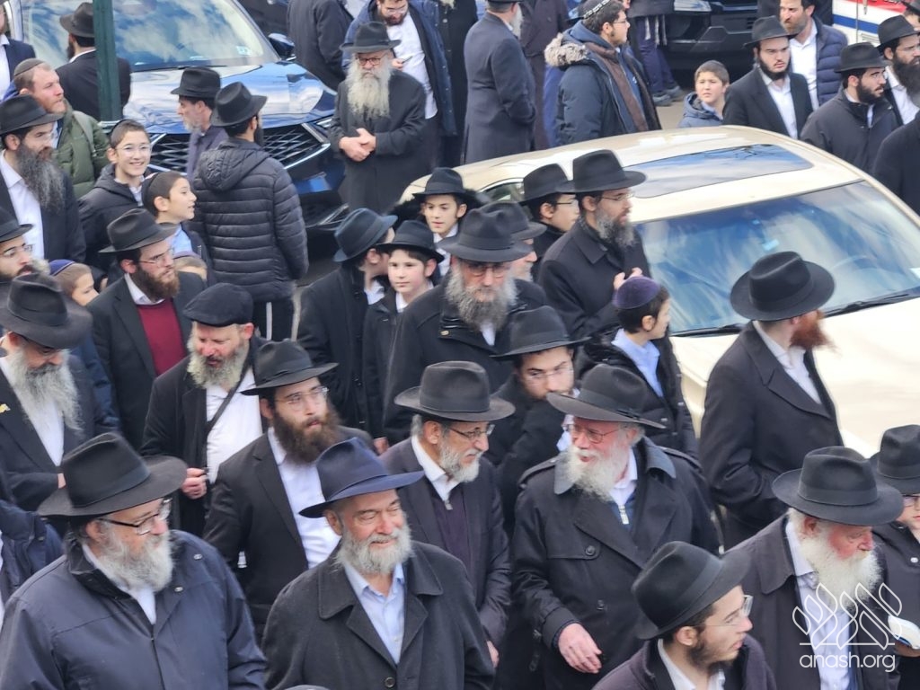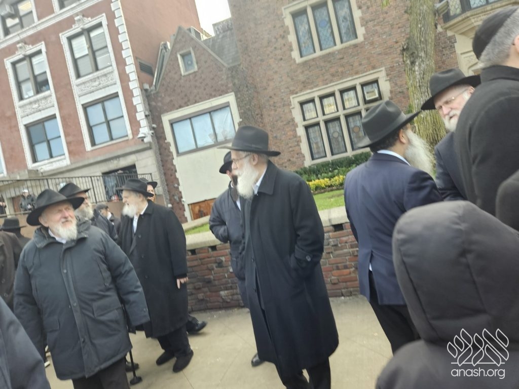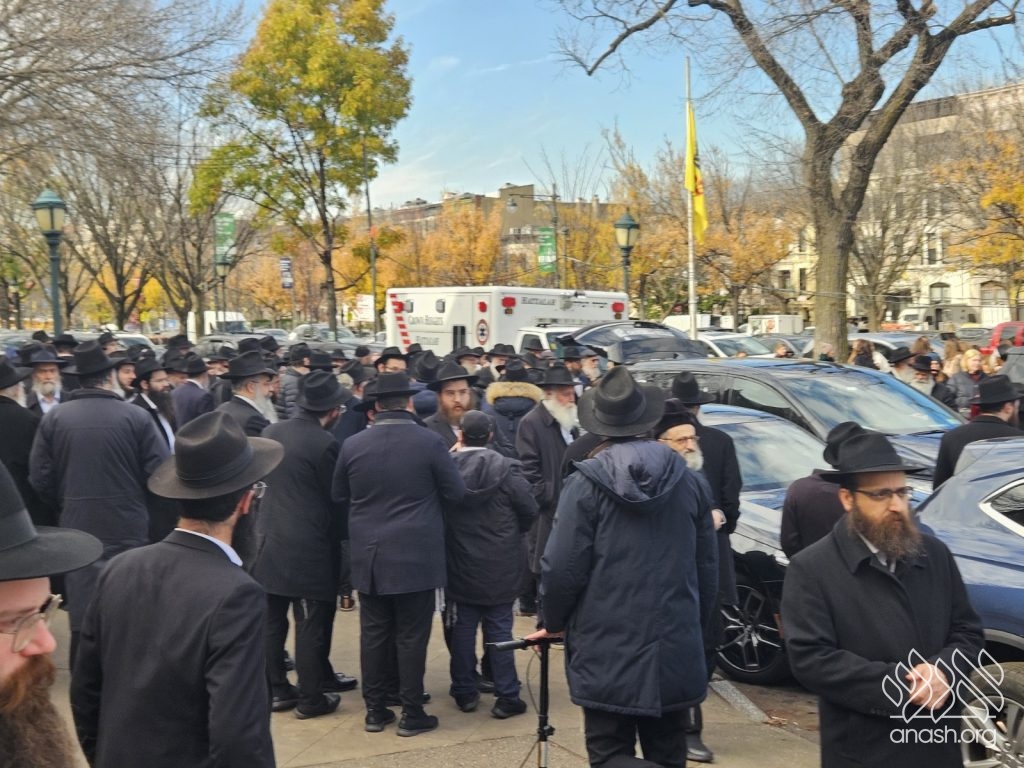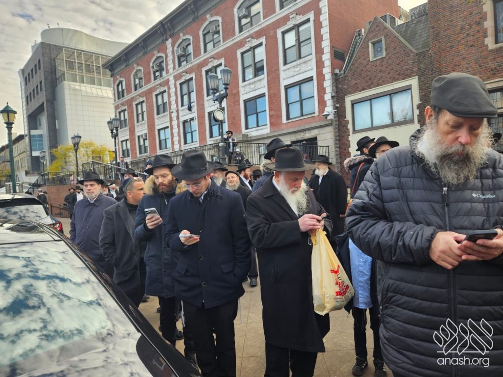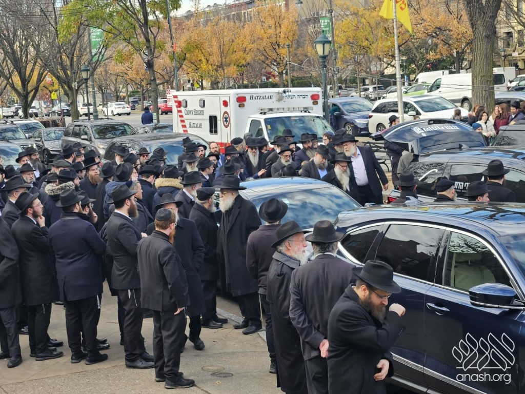 The levaya for Mrs. Sheina Tema Gurary, founder and longtime editor of the “Di Yiddishe Heim” Lubavitch magazine and matriarch of a large Lubavitch family, passed by 770 on the way to kevura near the Ohel.