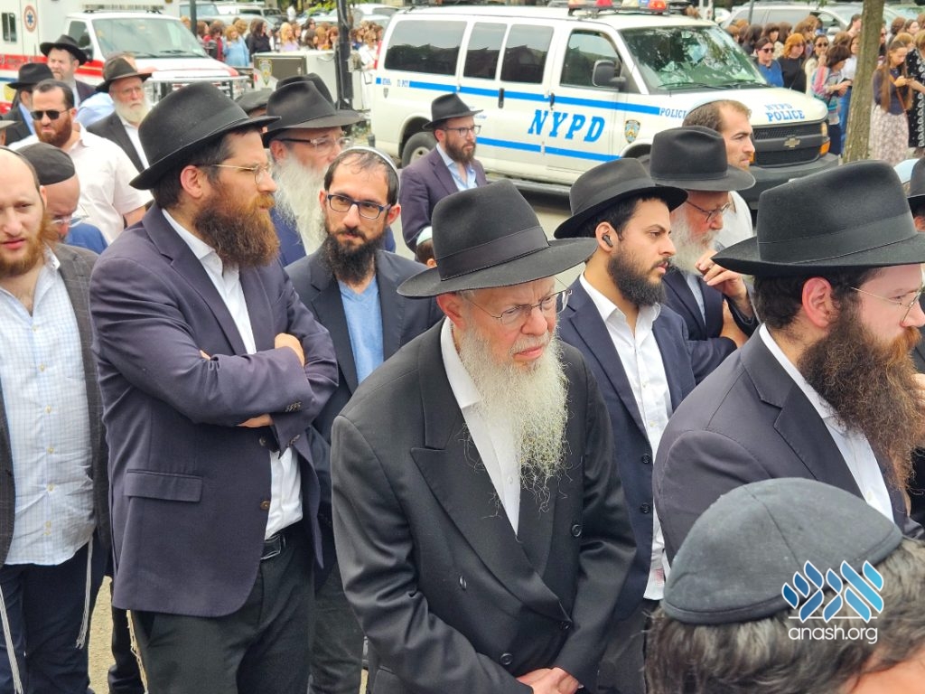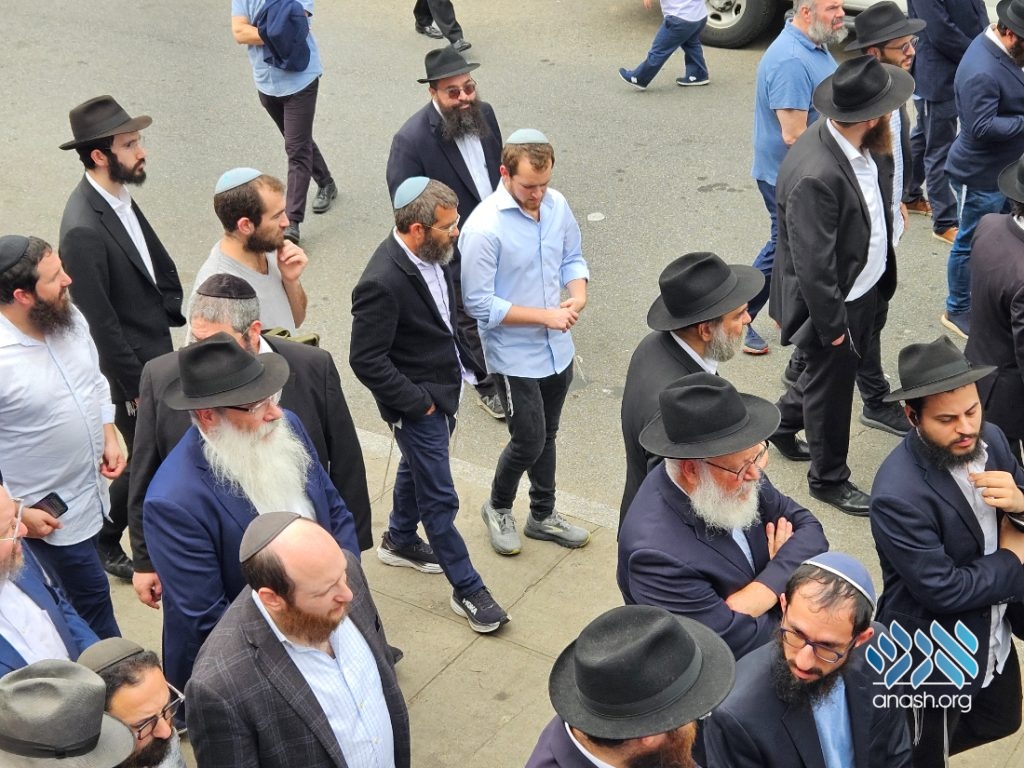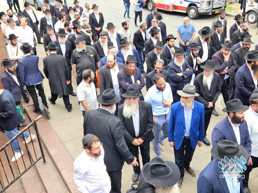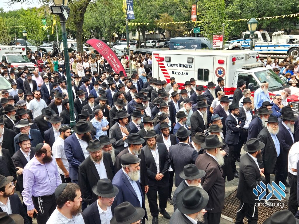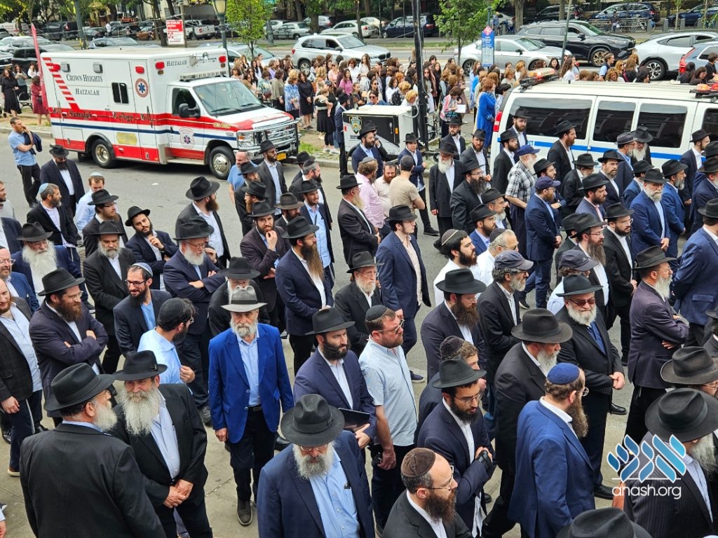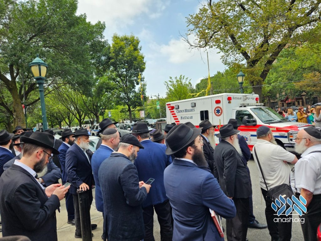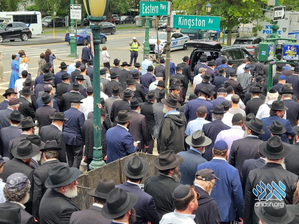 The Levaya of Mrs. Tsevia Gopin, a longtime resident of Crown Heights and mechaneches, who passed away on Wednesday, 13 Menachem Av, passed by 770 today on the way to kevura at Old Montefiore Cemetery.