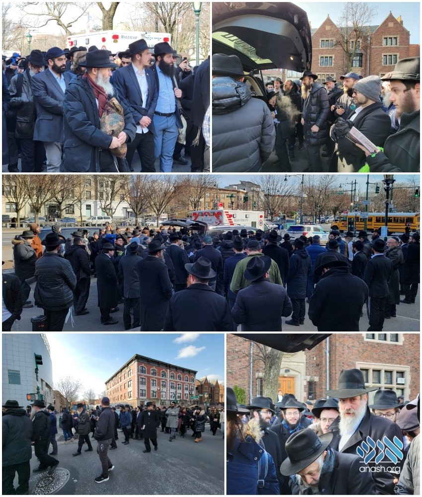 The levaya for R’ Mordechai Samotin, a longtime resident of Crown Heights, passed by 770 Eastern Parkway on Monday morning.