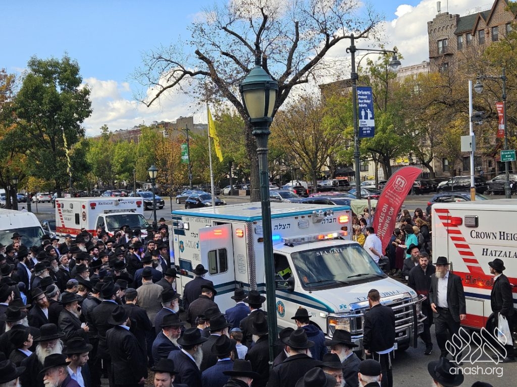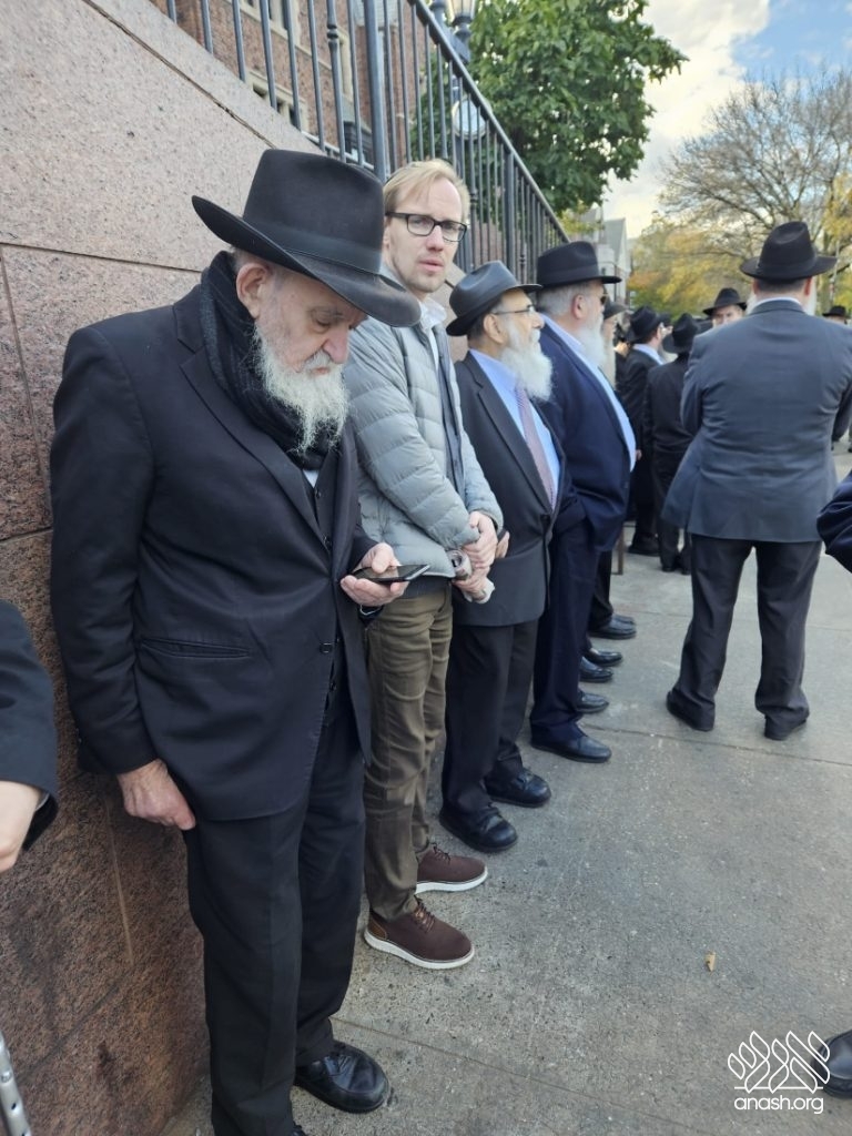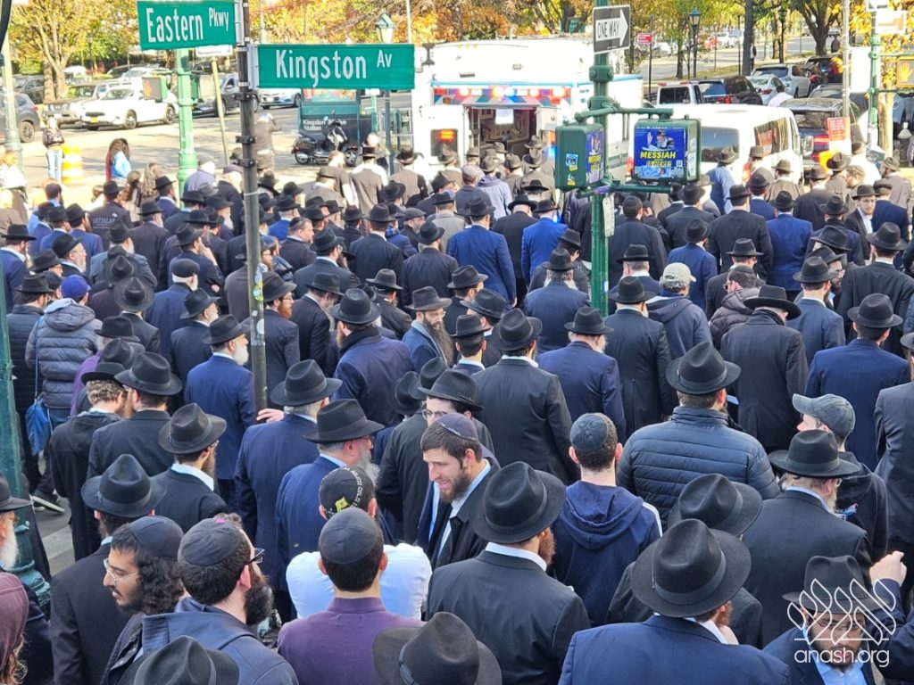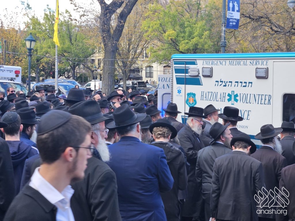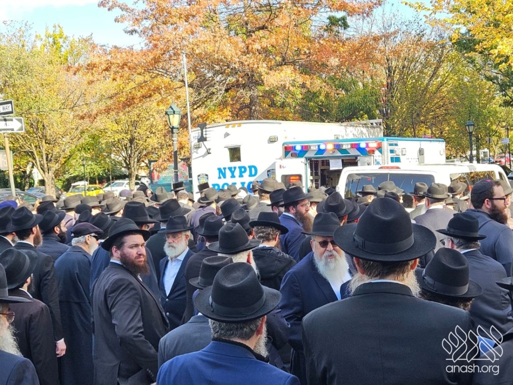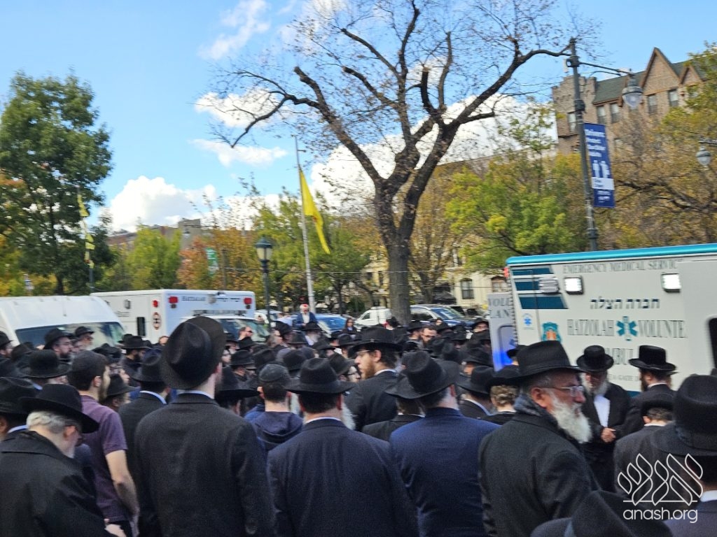 A large crowd gathered in front of 770 for the levaya of Rabbi Chaim Brikman, lifelong shliach to Seagate, New York, where he also served as Rav of K’hal Kneses Yisroel, who passed away on Sunday, 4 Cheshvan.
