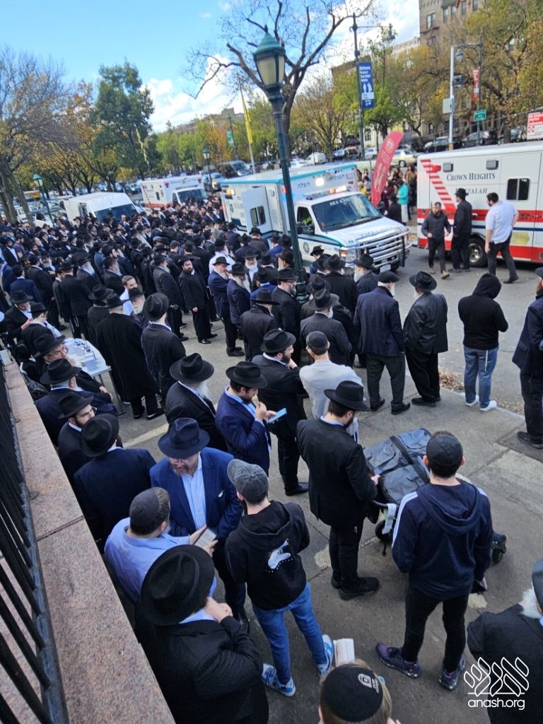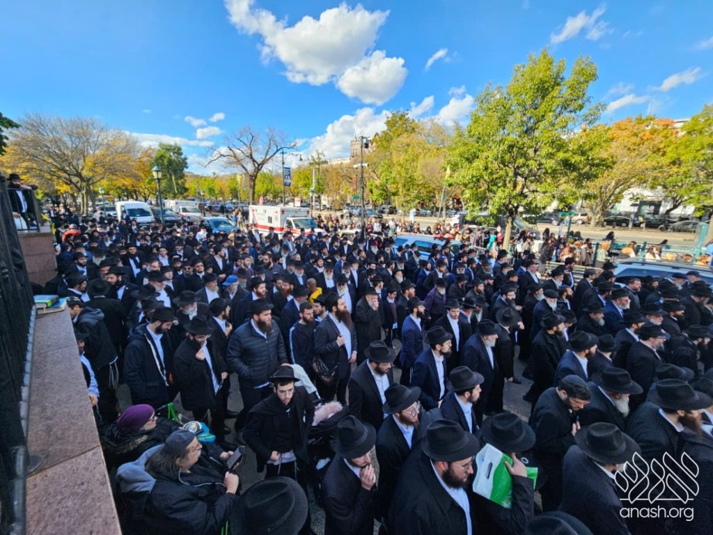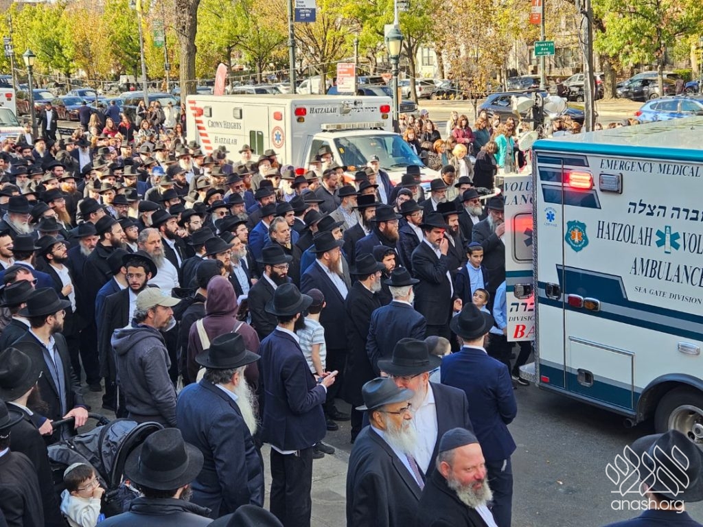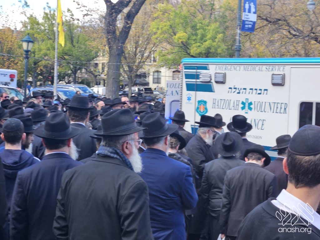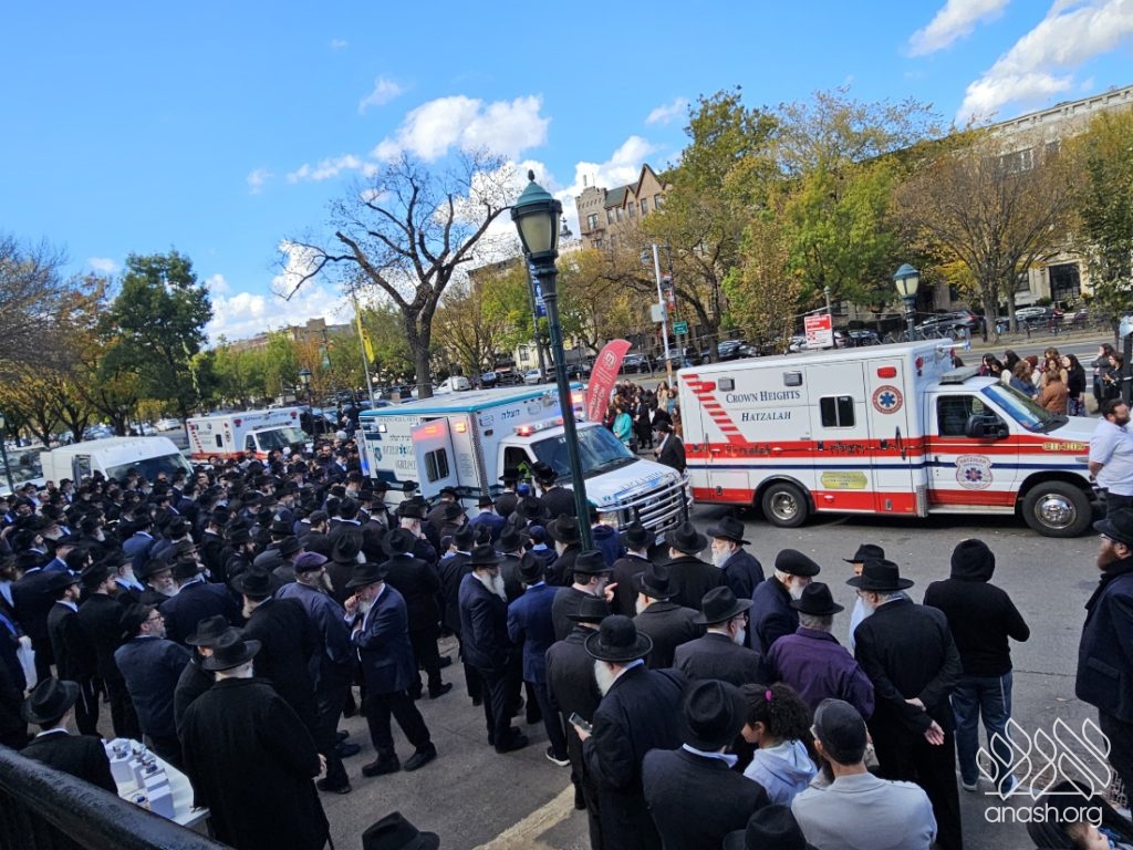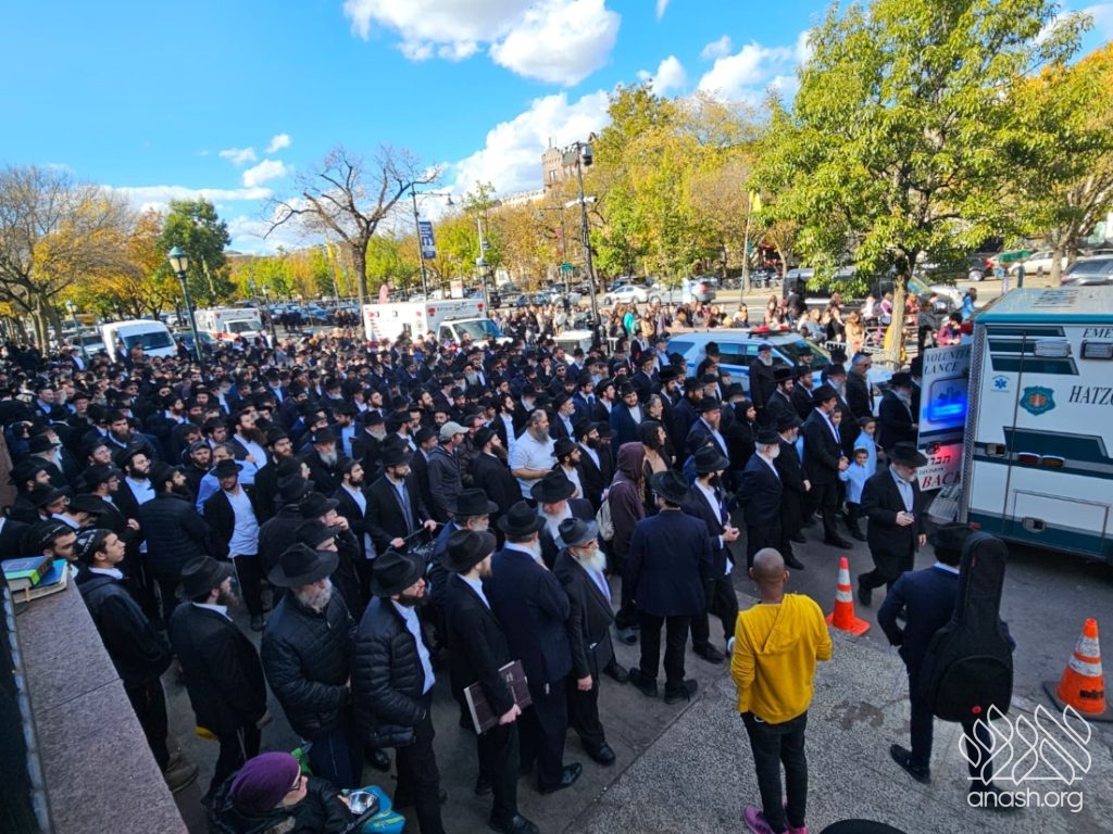 A large crowd gathered in front of 770 for the levaya of Rabbi Chaim Brikman, lifelong shliach to Seagate, New York, where he also served as Rav of K’hal Kneses Yisroel, who passed away on Sunday, 4 Cheshvan.