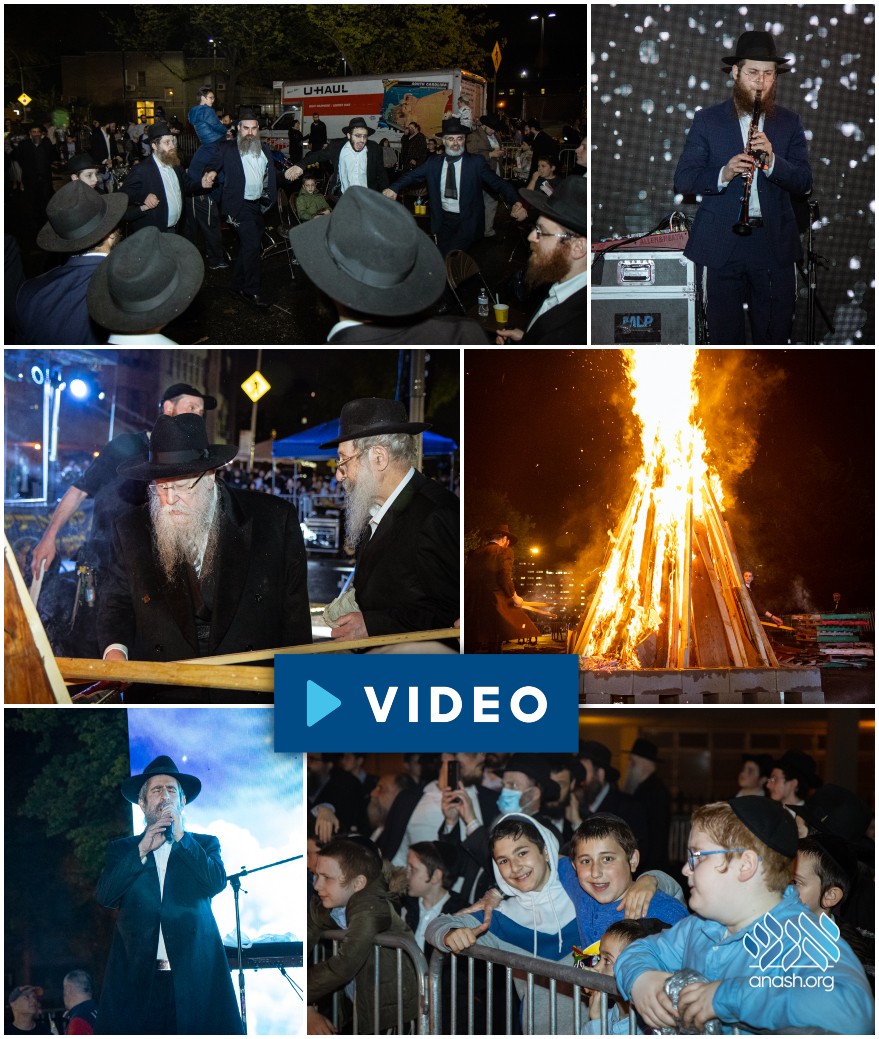 Crown Heights locals braved the rain to join a communal bonfire marking Lag B’omer, followed by hours of dancing to traditional songs and Chabad niggunim.