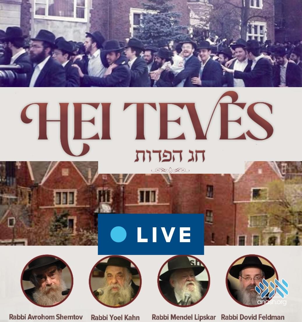 Join Live at 8:30 PM ET: A farbrengen by Aguch will mark the auspicious day of Hey Teves, with addresses by Rabbi Yoel Kahn, Rabbi Avrohom Shemtov, Rabbi Mendel Lipskar and Rabbi Dovid Feldman.