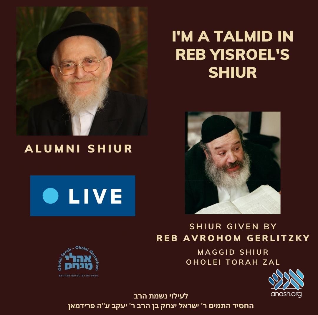 Join Live at 8:30 PM ET: Reb Avrohom Gerlitzky will be delivering a shiur for Oholei Torah alumni in memory of Rosh Yeshiva Reb Yisroel Friedman a”h.