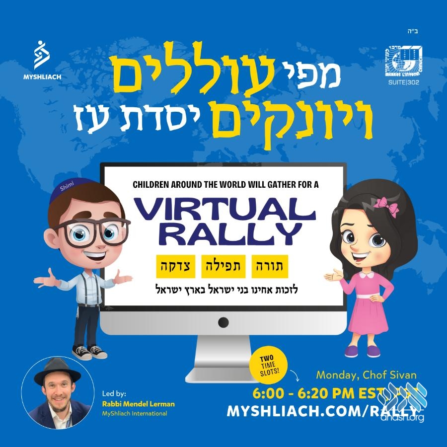Whenever conflict erupted in Eretz Yisroel, the Rebbe turned first to the pure prayers of Tinokos Shel Beis Rabban. Answering that call, Merkos 302’s MyShliach has organized an emergency children’s rally, taking place this evening.