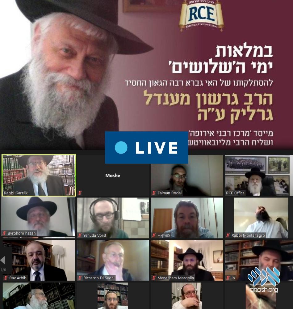 A virtual farbrengen hosted by Merkaz Rabbonei Europe marks the shloshim of Rabbi Gershon Mendel Garelik, the organization’s founder and Head Shliach to Italy.