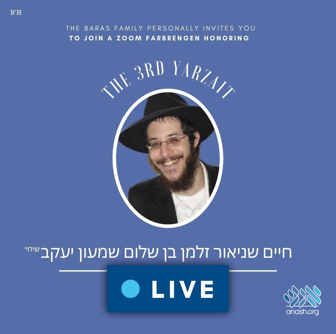 Live: Farbrengen Marking 3rd Yahrzeit of Rabbi Zalman Baras