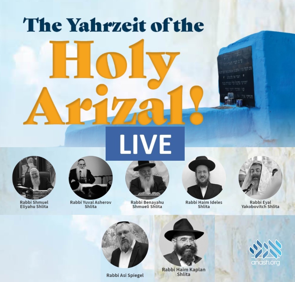 Join Live at 10:00 PM ET: Join a global tefillah for the end of the pandemic and two hours of learning broadcast from the Arizal‘s kever in honor of his yahrzeit.