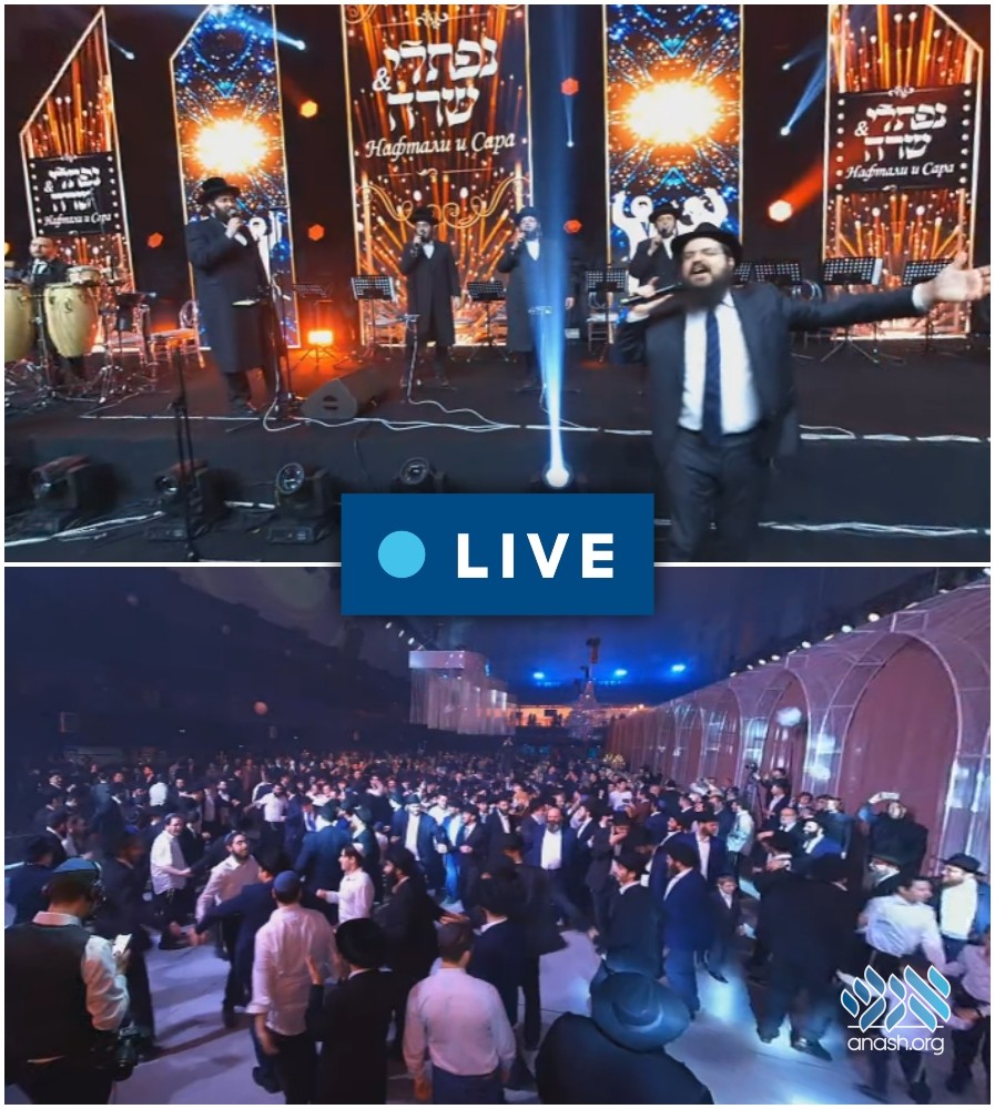 Live: Join the wedding celebration of Naftali Wilhelm of Crown Heights, and Sarah Lazar of Moscow, Russia taking place now at the Music Media Dome in Moscow.