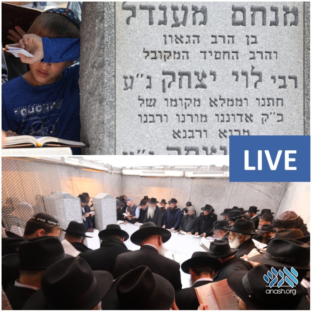1:15 – 1:45 pm ET The live broadcast will continue, allowing one and all to read their Pan while viewing the Ohel, from wherever you may be.